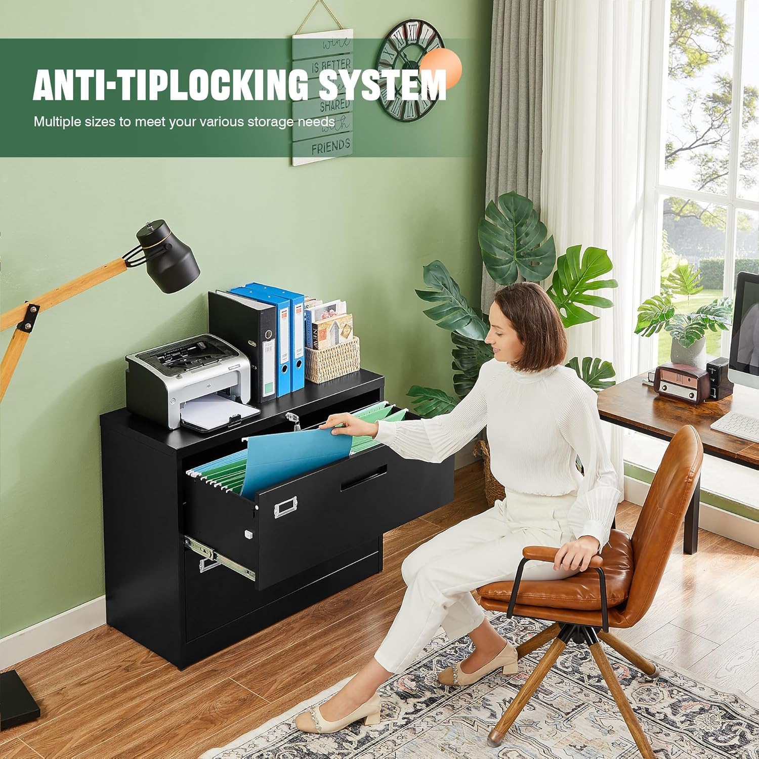Letaya Metal Lateral File Cabinets with Lock,2 Drawer Steel Wide Filing Organization Storage Cabinets,Home Office Furniture for Hanging Files Letter/Legal/F4/A4 Size (Blcak-2 Drawer)