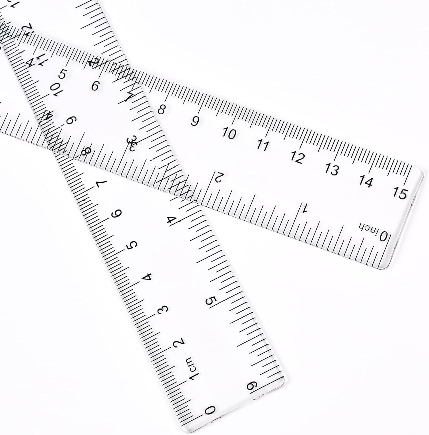 Clear Plastic 6 Inch Straight Ruler, Shatterproof With Inches and Centimeters for School, Classroom, Home, or Office (2pcs)