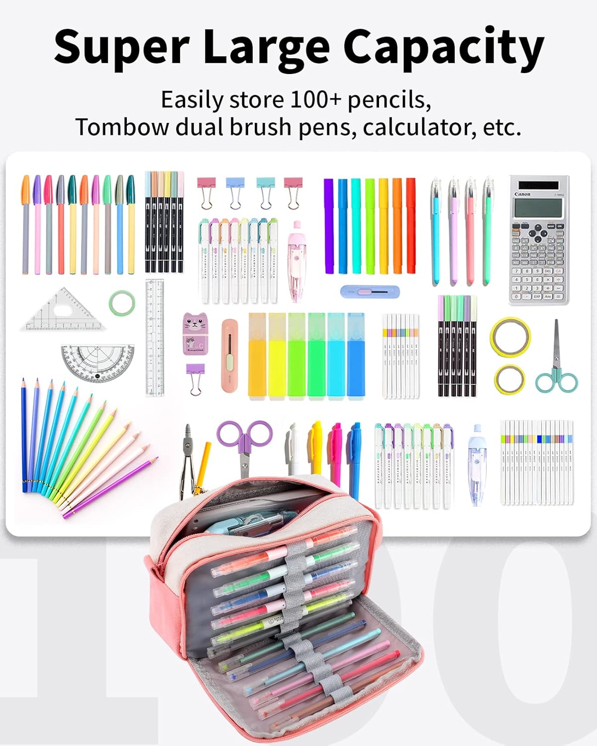 Sooez Big Capacity Pencil Case, Upgraded Canvas Pencil Pouch Large Pencil Bag Organizer, Separate Compartments Easy Grip Handle, Aesthetic Supply for School Teens Adults, Pink Pen Case