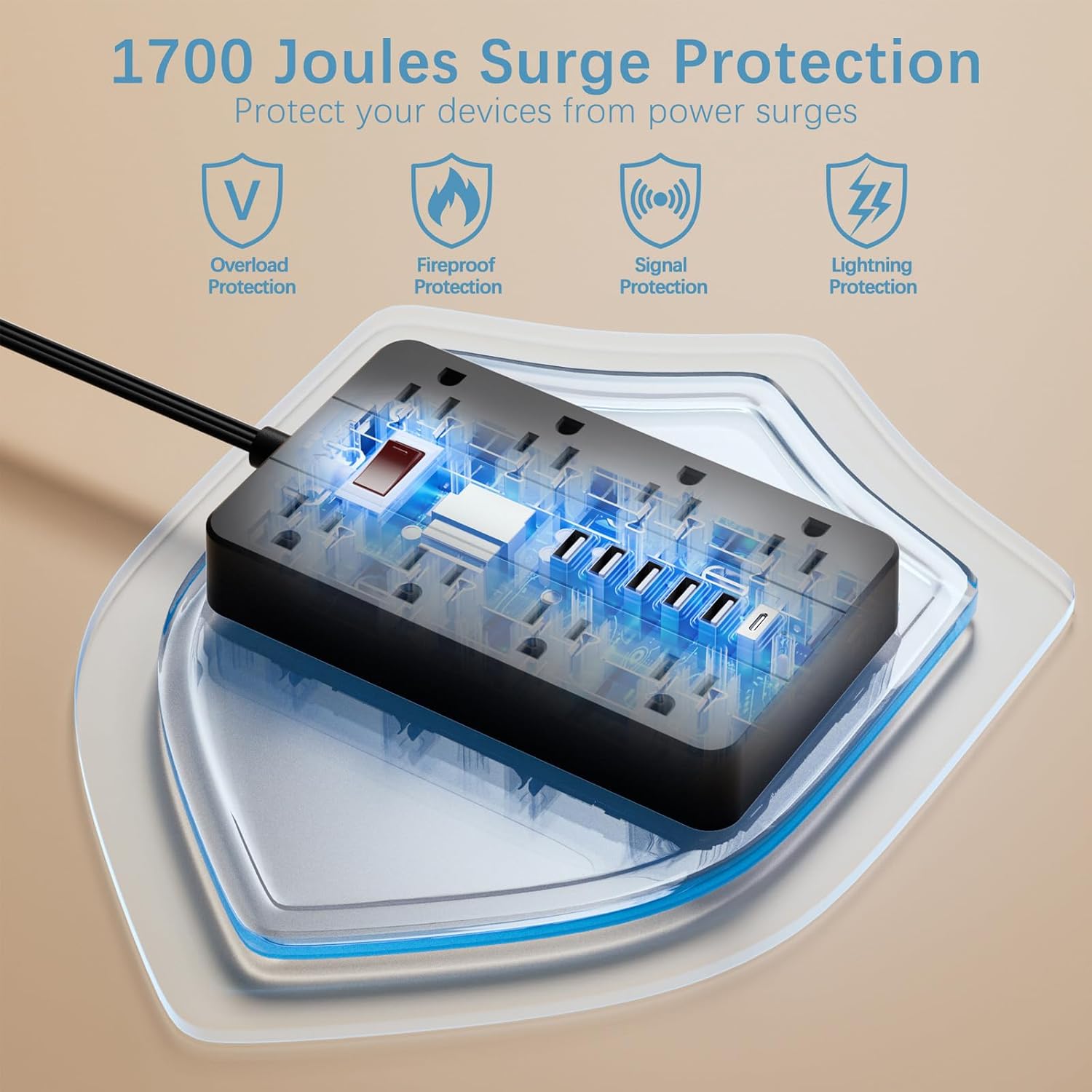 - Multiple Safety Protection: This power strip has overload protection, short-circuit protection, over current protection, over-voltage protection and overheating protection, It will automatically cut power to protect connected devices when voltage surge is overwhelming, providing you with a safe and reliable charging environment