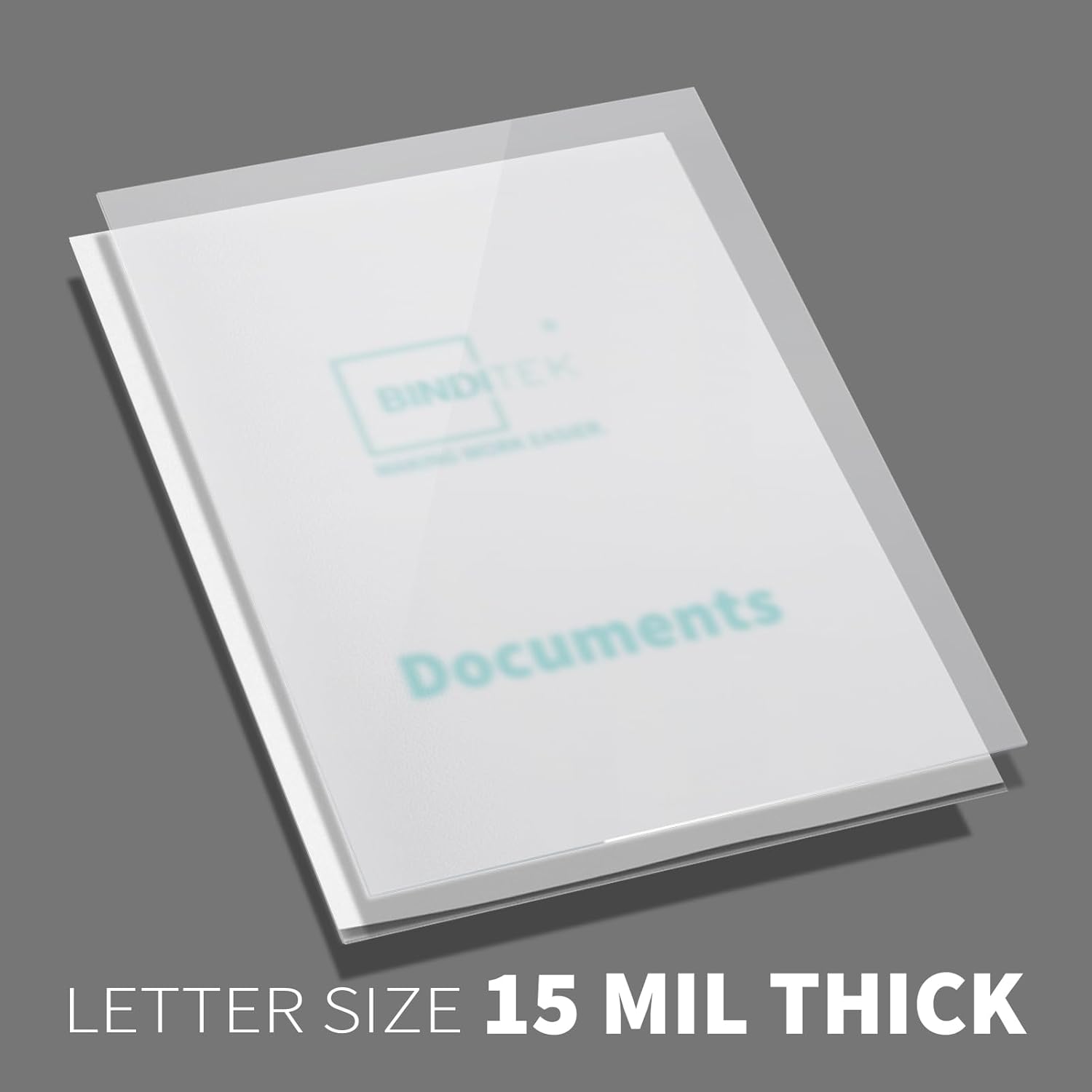Binditek 50 Pack 15 Mil Frosted Polycovers, Semi-Transparent, 8-1/2 x 11 Inches, Lightly Textured Sand Finish, Square Corners, Unpunched Binding Covers, Office Supplies