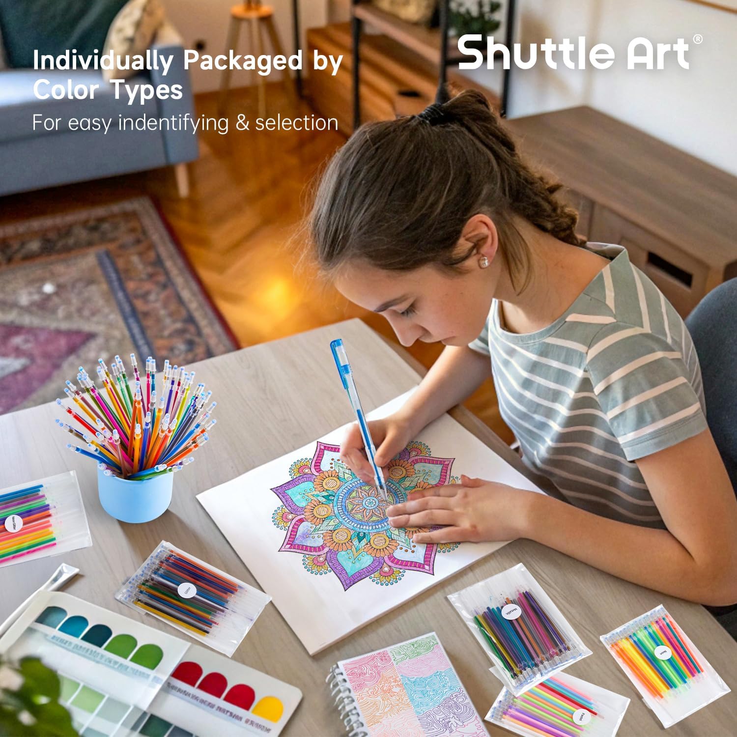 - 140 UNIQUE COLORS: Shuttle Art Gel Pen Refills Set has 140 unique colors, including 7 color types: glitter, neon glitter, metallic, neon, pastel, swirl, standard. Abundant colors with varied color types, fully meet your demands of coloring, writing and drawing.