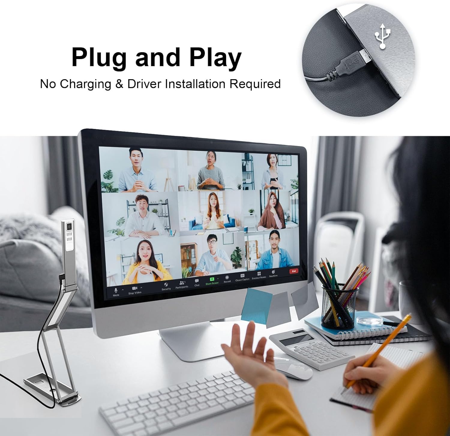 - Plug-and-Play & folding design - works with all major video conferencing software without installing an additional driver, such as Zoom, Microsoft Teams, Google Meet, and Skype. Fold and go after use, and comes with a carrying bag.