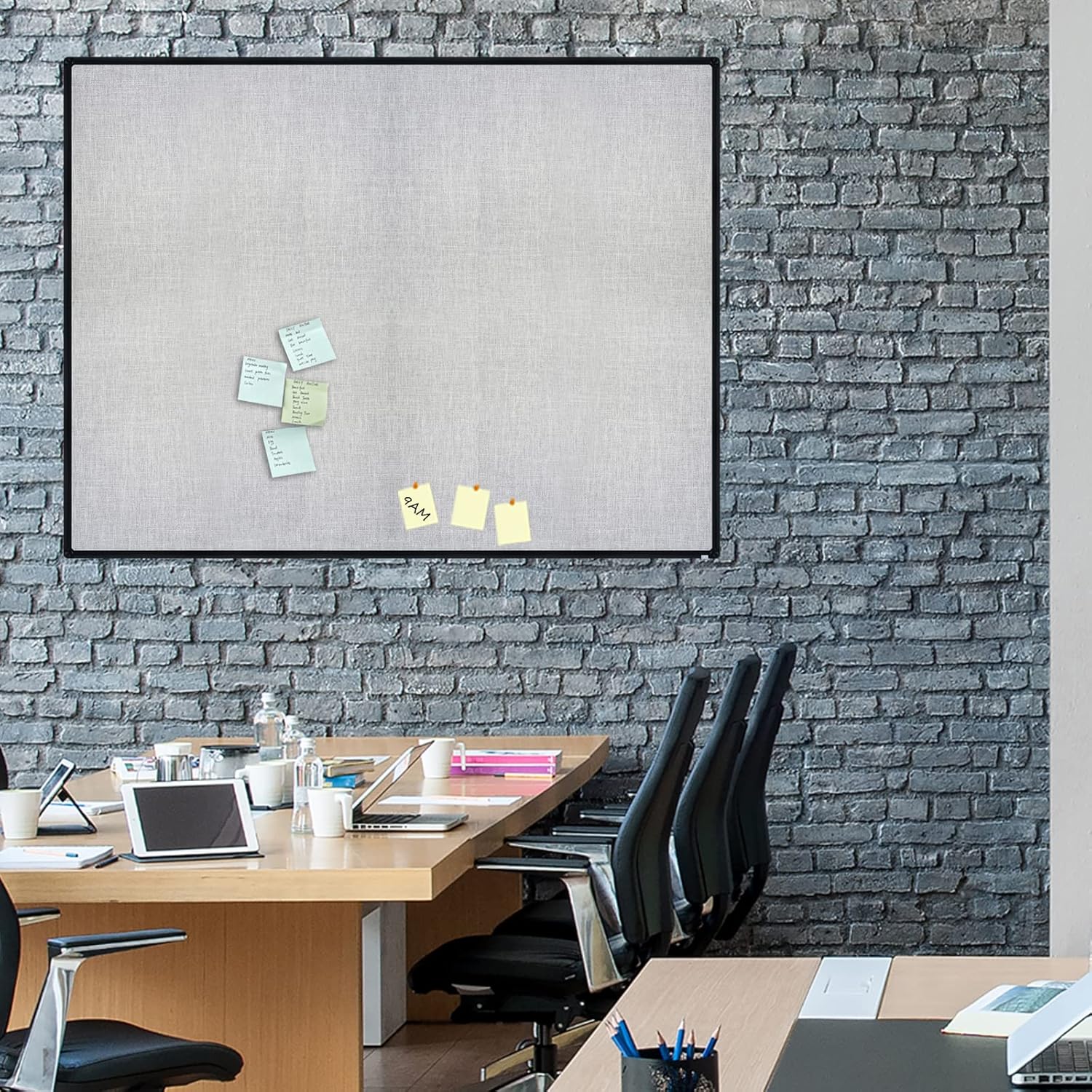 JILoffice Cork Linen Bulletin Board 48 X 36 Inch (Grey), Black Aluminum Frame Wall Mounted Board Memo Pin Board for Office Home and School