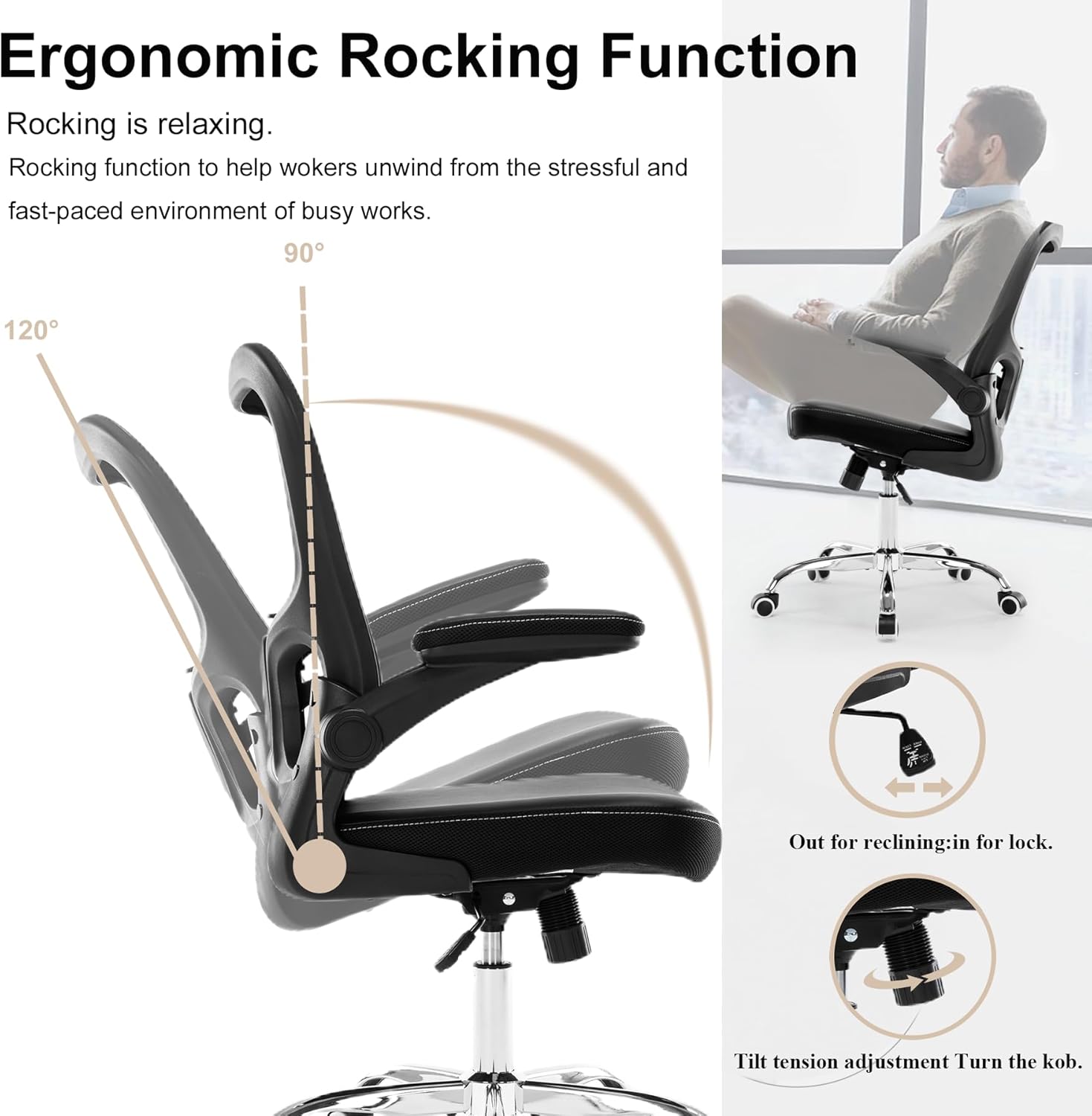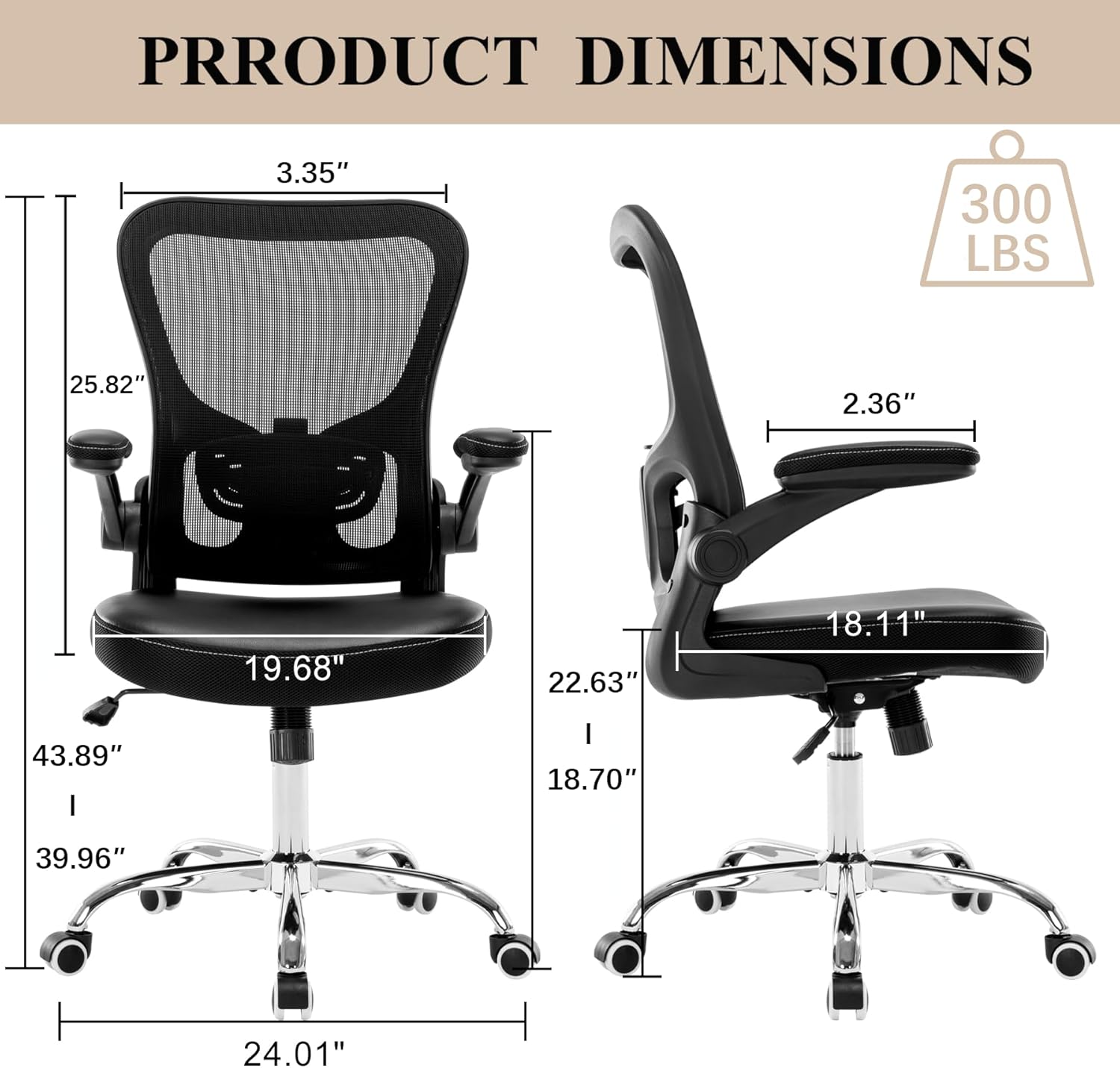 Office Chair, Mesh Ergonomic Desk Computer Chair with PU Leather Flip-up Armrest, Home Task Chair with Lumbar Support, Adjustable Executive Mid Back, Rolling Swivel,Black