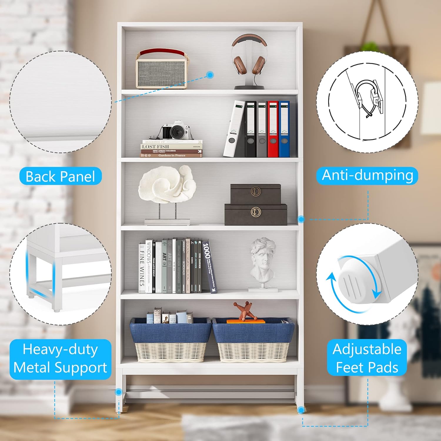 - [Heavy Duty 5-Tier Bookshelf]: Unlike other bookshelves which lean forward, ours are free-standing perpendicular to the ground, super stable, and sturdy. Item weight: 68.7lbs. Heavy and strong.