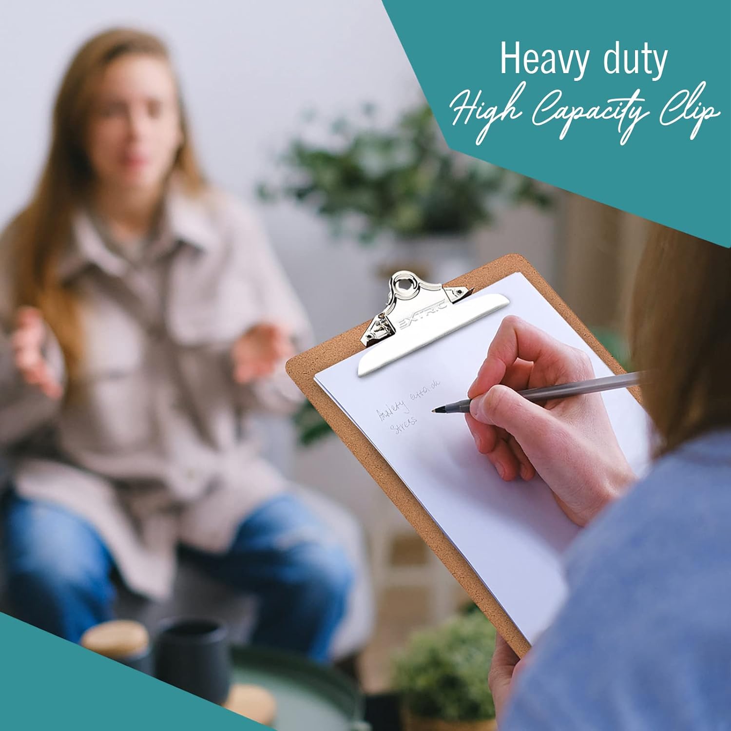 - Strong high capacity clipboard with metal clip securely holds up to 100 sheets of paper. 6” rust resistant clip.