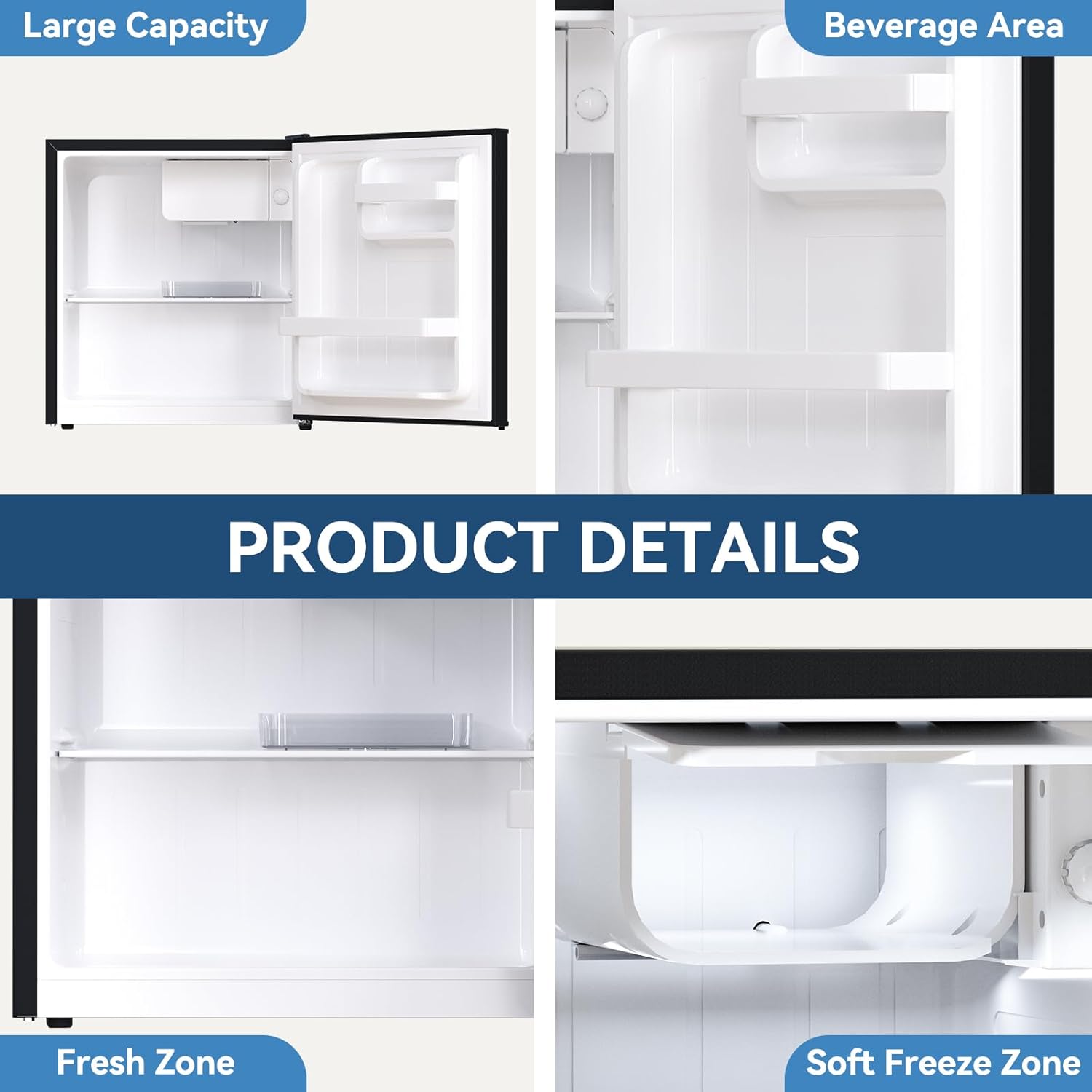 - Configuration : Compact Fridge with Freezer