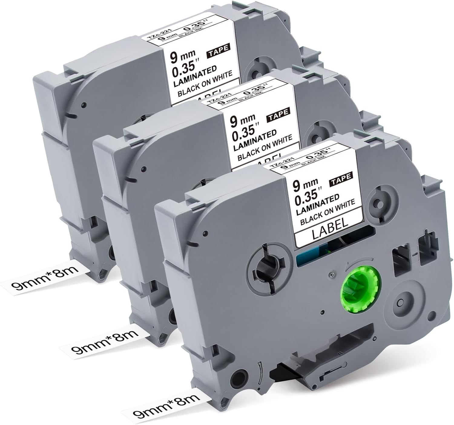 - Common Sizes : 9mm (0.35" 3/8inch) width, 8m (26.2feet) length each pack TZe-221 tz tape 9mm, total 3 packs.