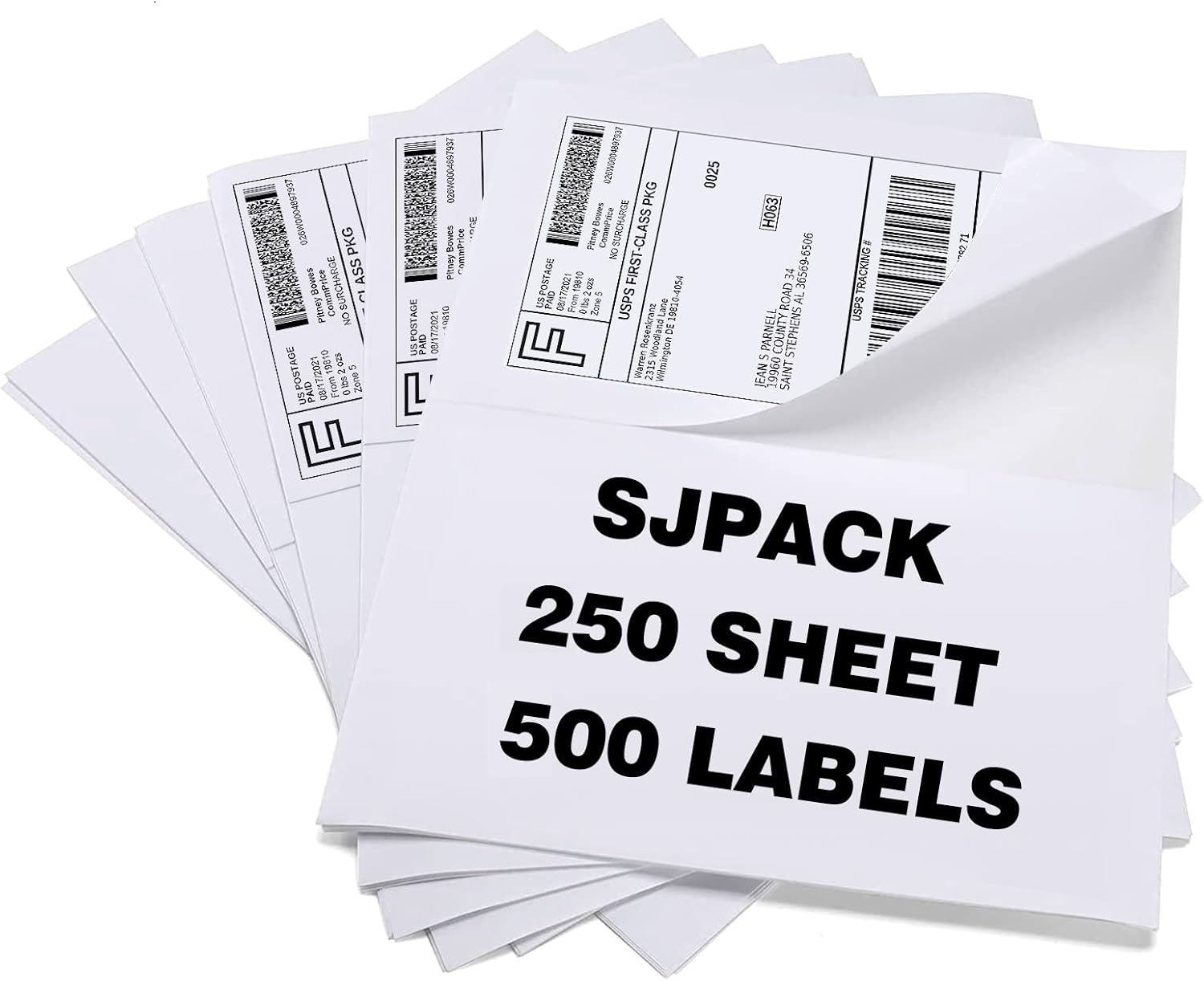 - Size: Each shipping labels sheet is 8.5"x 11" (letter size), each label is 8.5"x 5.5", 2 labels per sheet, 250 sheets, 500 labels in total.