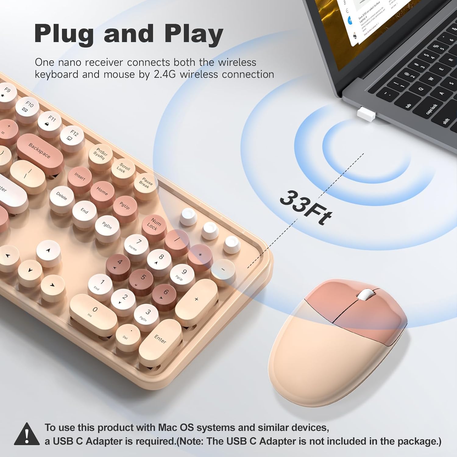 MOFII Wireless Keyboard and Mouse Combo,2.4GHz Retro Full-Size Keyboard with Number Pad and Cute Wireless Mouse for Computer PC Desktops Laptop WindowsxP/7/8/10(Milk Tea Colorful-B)