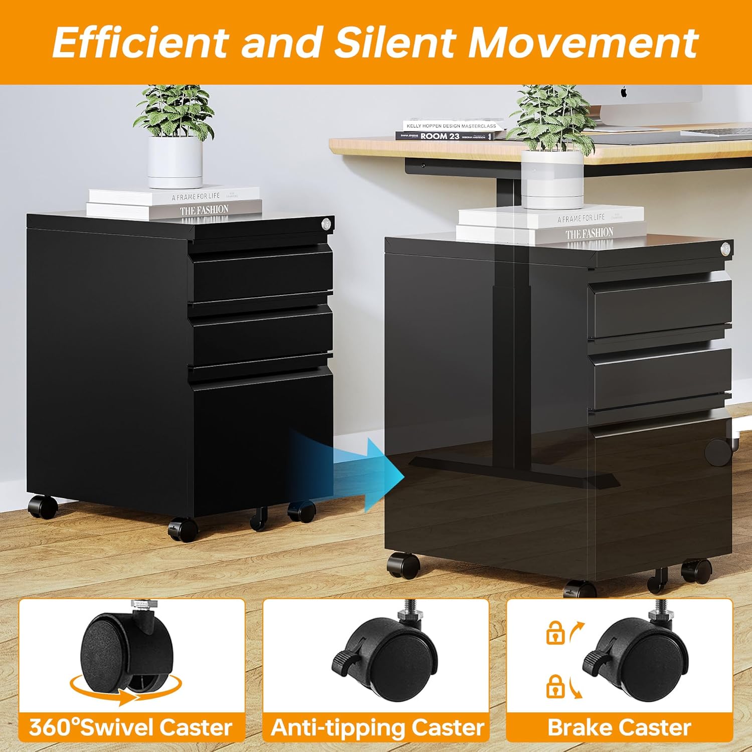 - ✅➤【LOCK AND ANTI-TILT DESIGN FOR HIGHT SECURITY 】: The sturdy file cabinet comes with 2 keys to lock up the top and bottom drawers. And the small wheel in the front that keeps the cabinet from tipping. The rear casters can be moved around and locked. Easy to move around and enough space for your files and keep important Files. Home files fit well in this stable and movable 3-drawer file.