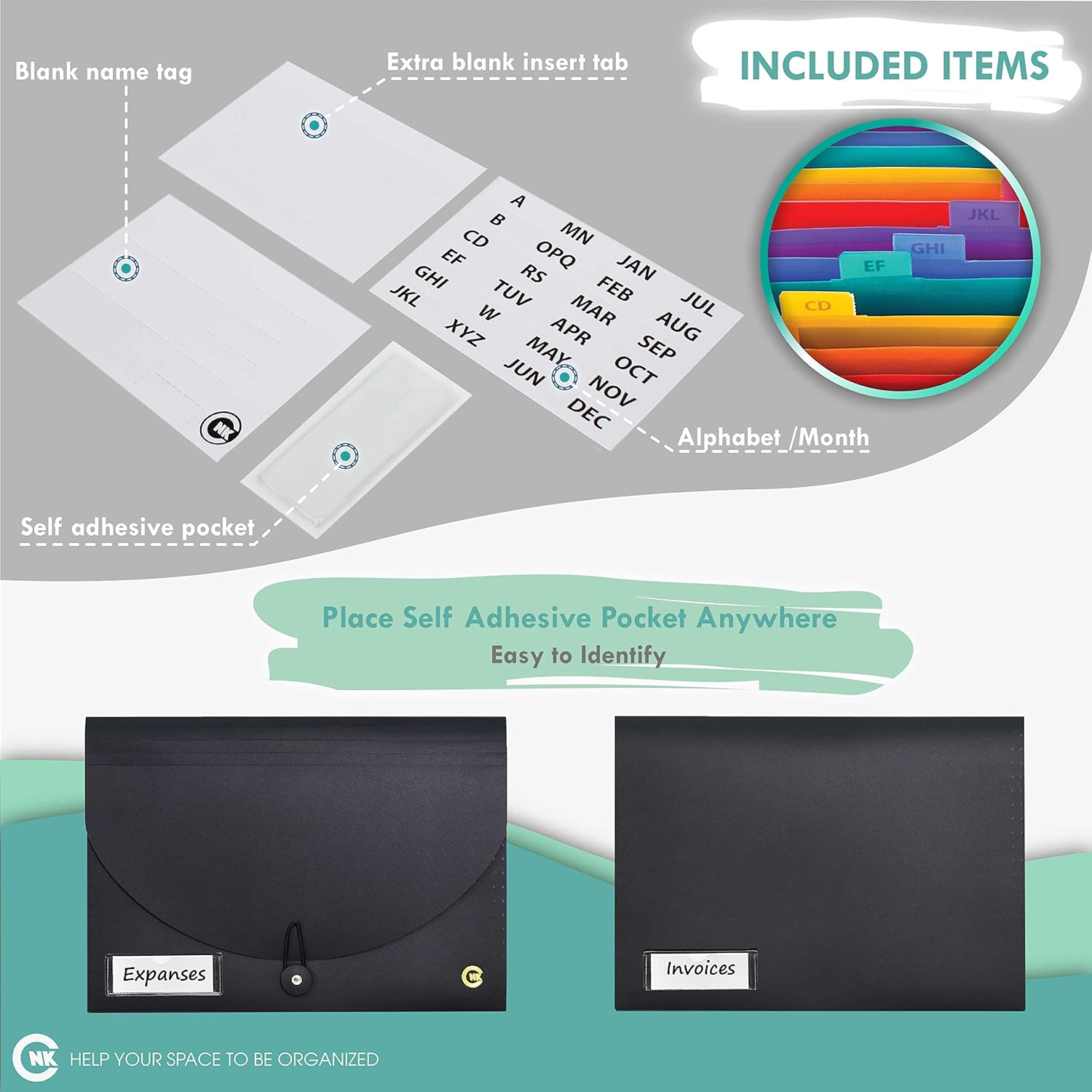 - [High Quality Material] Our 13 Pocket Expanding File Folder is made from quality PP Plastic material, Acid-Free, PVC-Free to ensure durability, water resistant and long lasting cover from every uses.