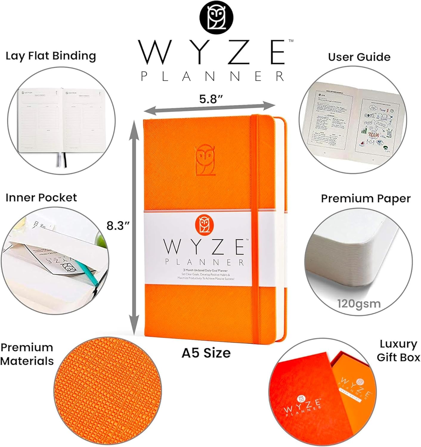 Undated Daily Planner – 3-Month A5 Productivity Organizer with Full Page Per Day, Hourly Schedule, Goal Setting, Habit Tracker, Weekly & Monthly Pages – Hardcover Time Management Notebook (Orange)
