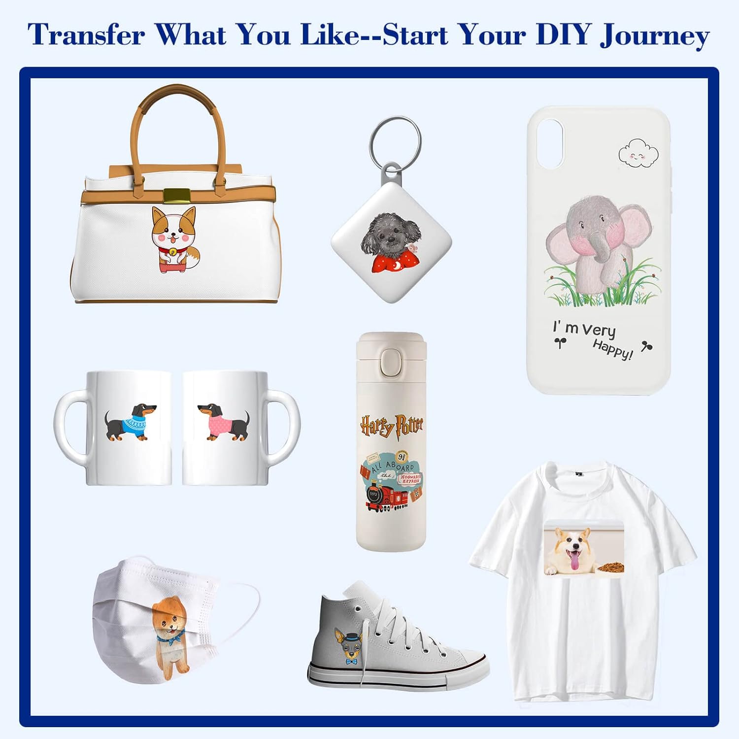 - DIY Your Sublimation Blanks: Start your sublimation ink DIY process and make special gifts for others. Refill the sublimation ink into your ecotank printer, then print your favor image on the sublimation paper and heat transfer the image on the items. DIY images can be applied on mugs, T-shirt, cloth, cap, ceramic, mouse pad, keychain, bags, etc. The sublimation ink can only be used on fabrics with a cotton content of less than 30%. After transfer, the T-shirt needs to cool down before washing