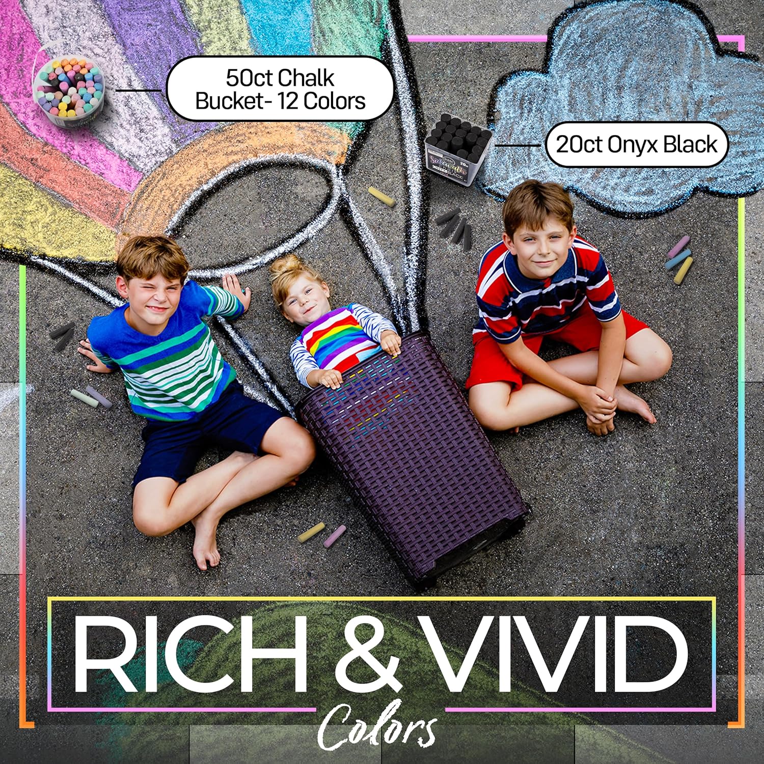 Loddie Doddie Black Sidewalk Chalk Bucket - 20 Count Jumbo Sticks Non-Toxic - Sidewalk Chalk For Kids & Outdoor Activities