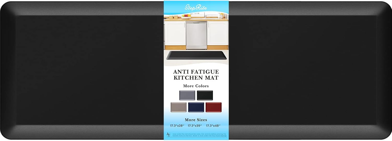 - 【Thicker Mat】The StepRite kitchen mat is made of 4/5 inch thick memory foam for better support and comfort when standing. Measured as 17*47 inches. Suitable for kitchen, office, laundry room or any high-traffic area.