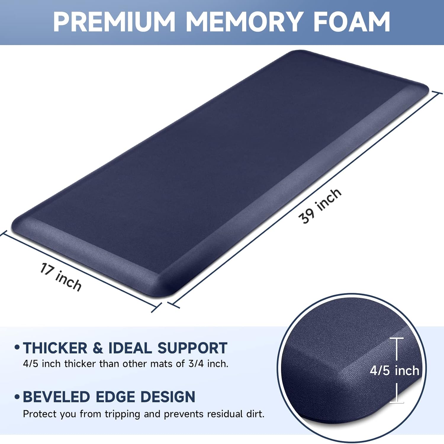 StepRite 4/5 Inch Thick Kitchen Mat Anti Fatigue Mat Kitchen Rugs Kitchen Decor Non-Slip, Stain Resistant, Waterproof Kitchen Mats Desk Mat for Kitchen, Office, Workshop, Blue, 17'' x 39''