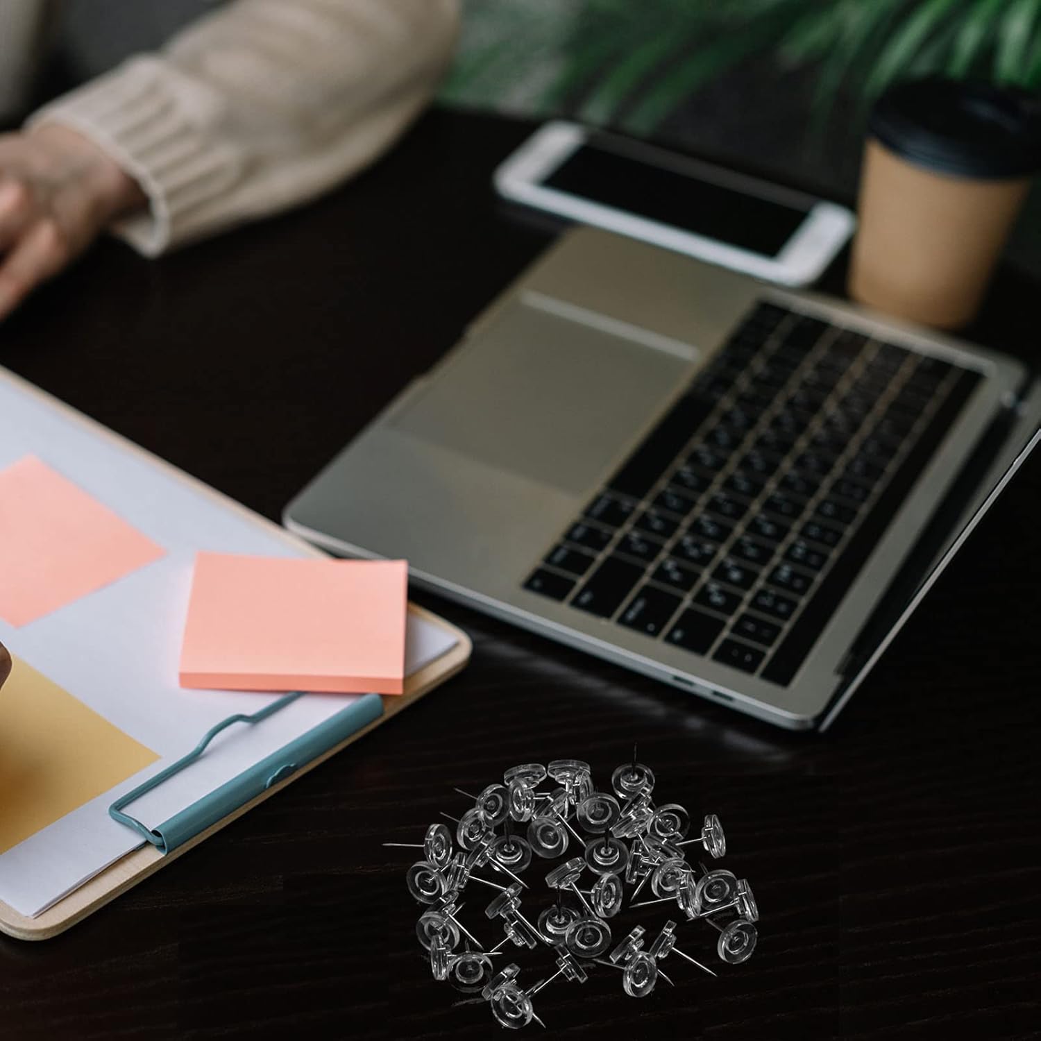 - [Package Includes]60 Count Thumbtacks Packed in Reusable Clear Box, Keep Your Desktop or your desk drawer organized.