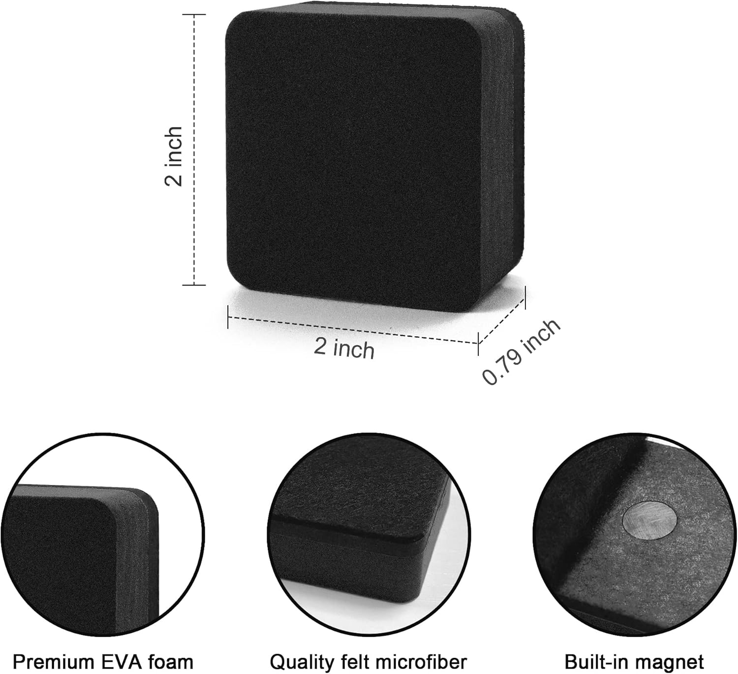 Dry Erase Erasers, IHPUKIDI 48 Pack Magnetic Whiteboard Dry Eraser Chalkboard Cleansers for Classroom, Home and Office (Black 2 x 2 Inch)