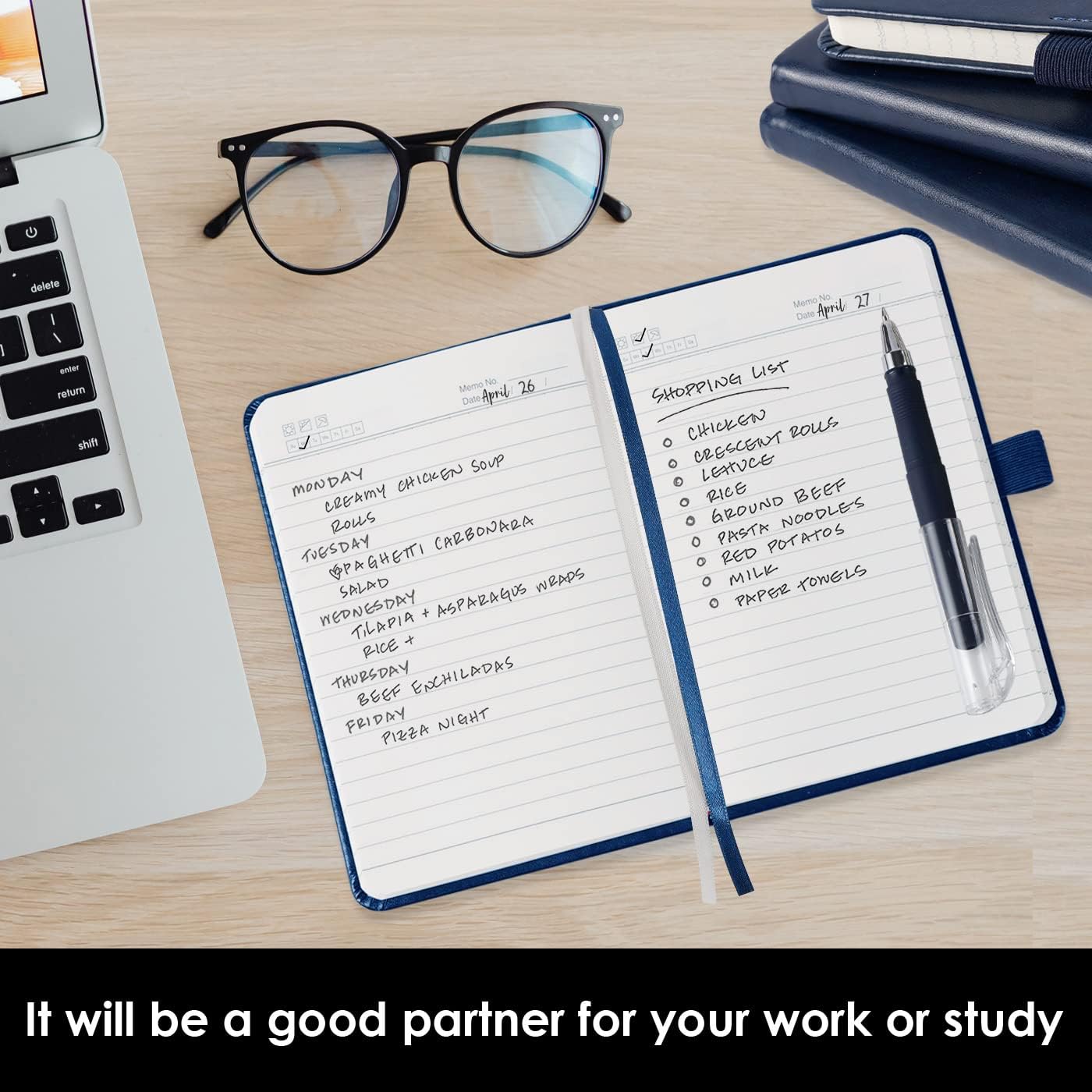 - 【Mini Journal Notebook】Each piece contains 3 small notebooks and 3 black pens, leather cover, strong binding won't crack. These small notebook journal for work Business Travel School Men & Women. There's a "date/page/weather/week" column on the top of every page.