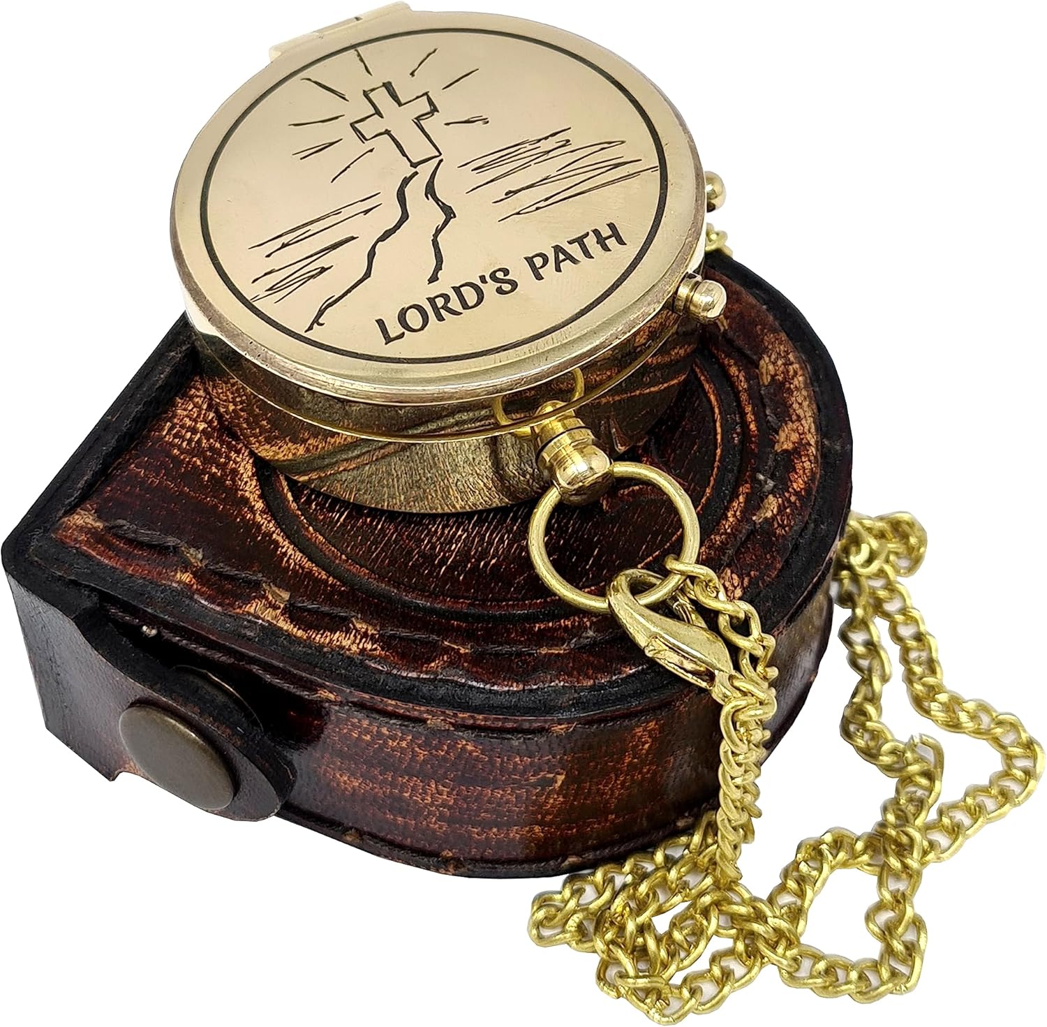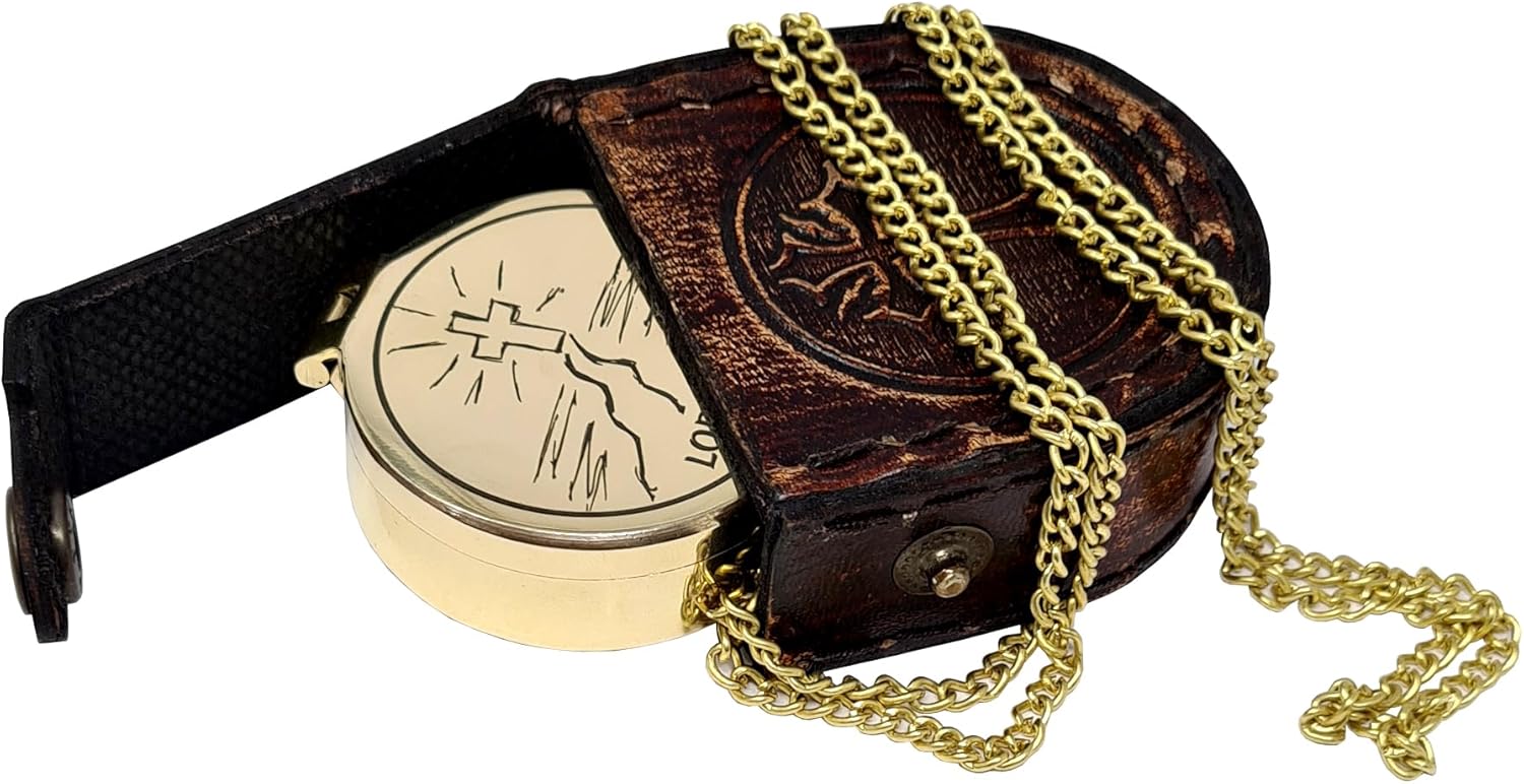 - Premium Quality: This pocket compass is made with the finest quality brass with a burnished brass finish, making it highly durable and suitable for outdoor use. The religious gift comes with a leather storage case that boasts fine craftsmanship to keep your compass safe.