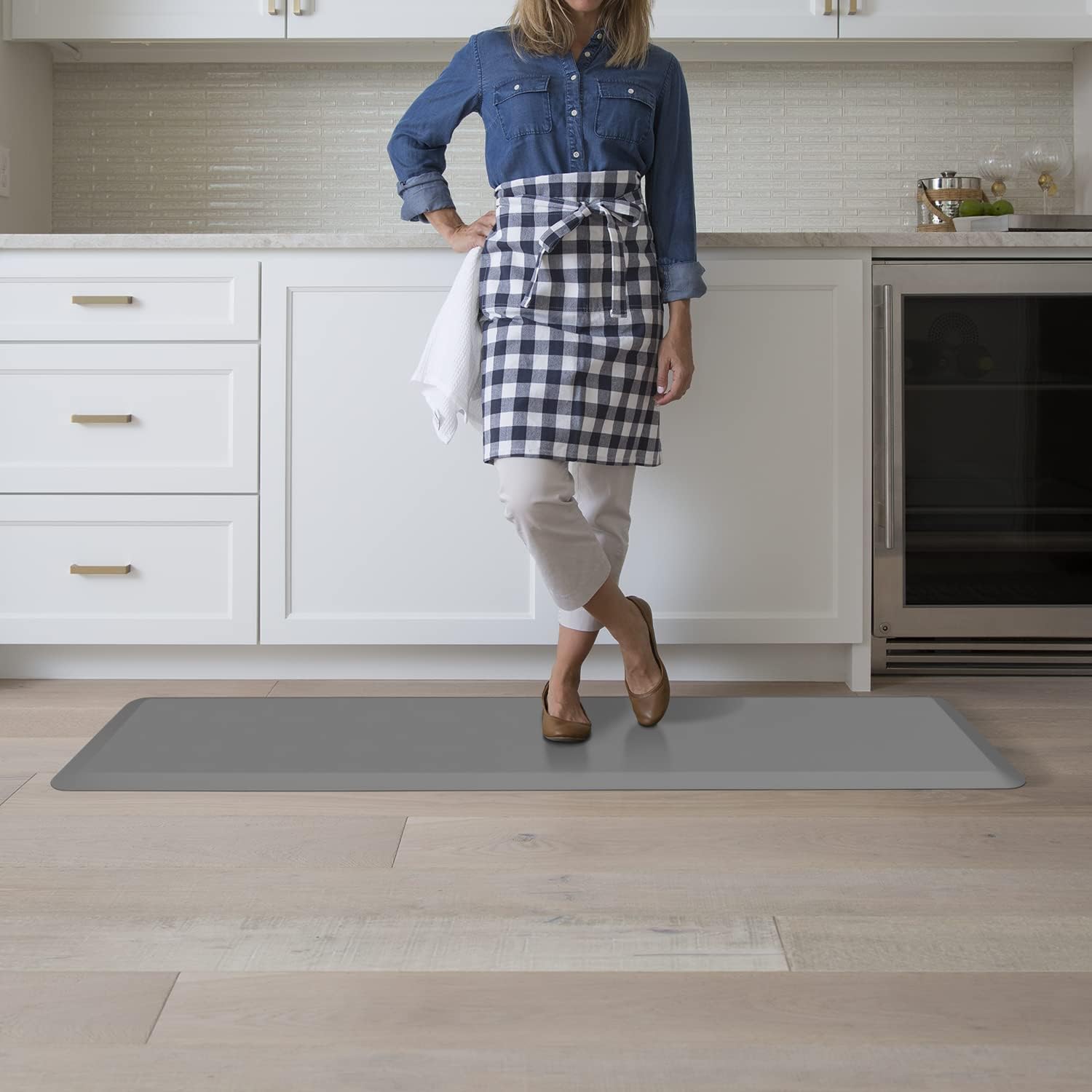 - MODERN & VERSATILE DESIGN- Featuring a leather grain textured surface, this sleek anti-fatigue and wellness floor mat is ideal for every working environment such as garages, workshops, mechanical shops, and even in the kitchen! The Versatility of this mat makes it a great gift for birthdays, housewarmings or Mother’s Day and Father’s Day