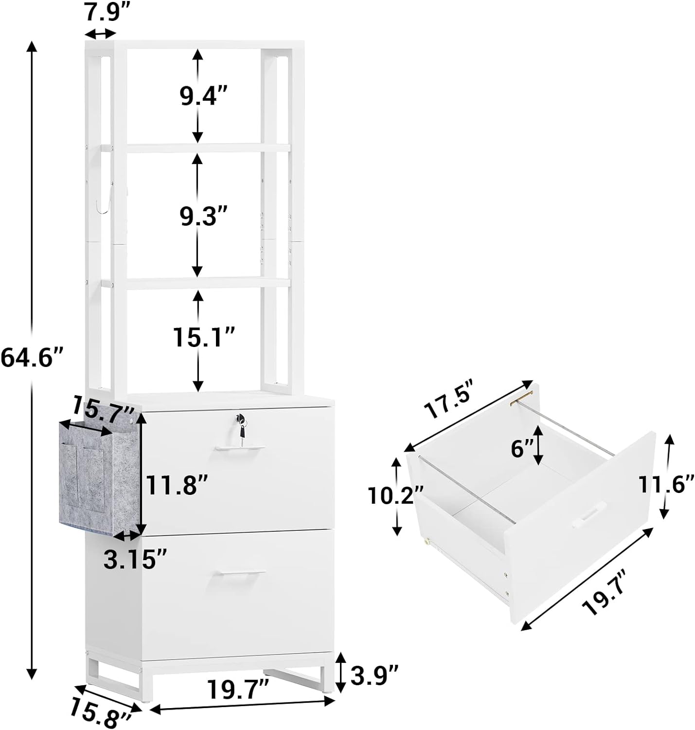 - ăFor a Tidy Office, Catches AllăItâs time to keep your paperwork organized in style! Itaar filing cabinet with lock, open storage shelf, 2 drawer, a storage bag and 1 piece S-Shaped hooks, keep your home office supplies in tidy and well free up your workspace. 19.7âL x 15.7âW file cabinet can hold your printer, files, documents, decorations.