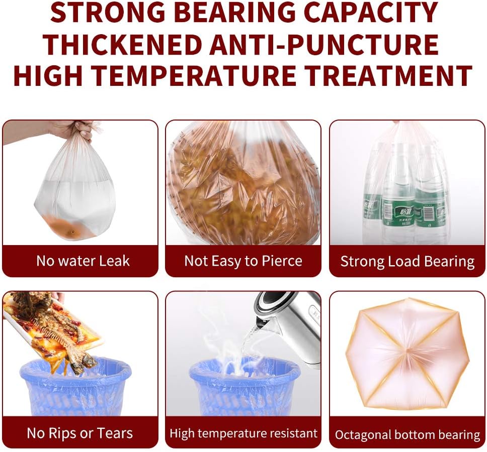 - ✹Durable and Sturdy: The 4 gallon trash bags are made of high-density material, which is strong enough to meet daily household needs. The octagonal bottom design reliably prevents leaks. Perfect for trash cans around the house or messes on the road.