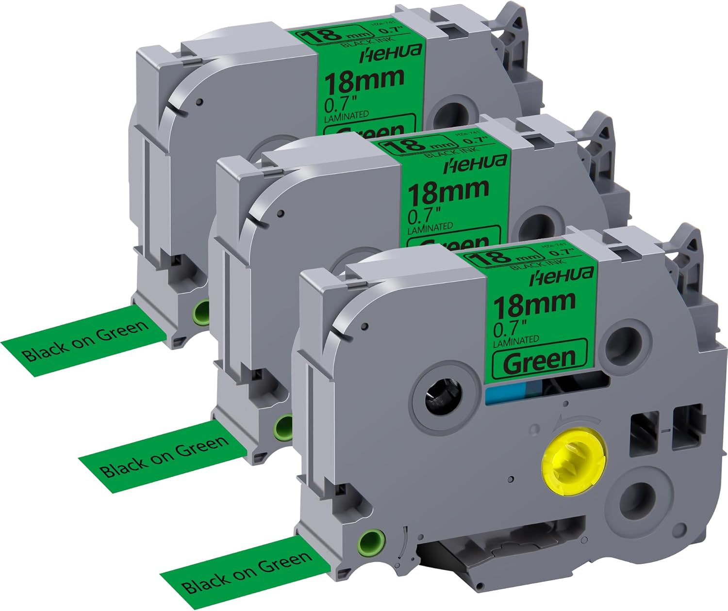 Hehua 18mm 0.7 Laminated Green Tape Compatible for Brother P-Touch TZe-741 TZe741 TZ741 TZ741 TZe TZ Label Tape for Ptouch PT D400 D600 D610 P710bt, 3/4'' x 26.2ft Black on Green, 3 Pack