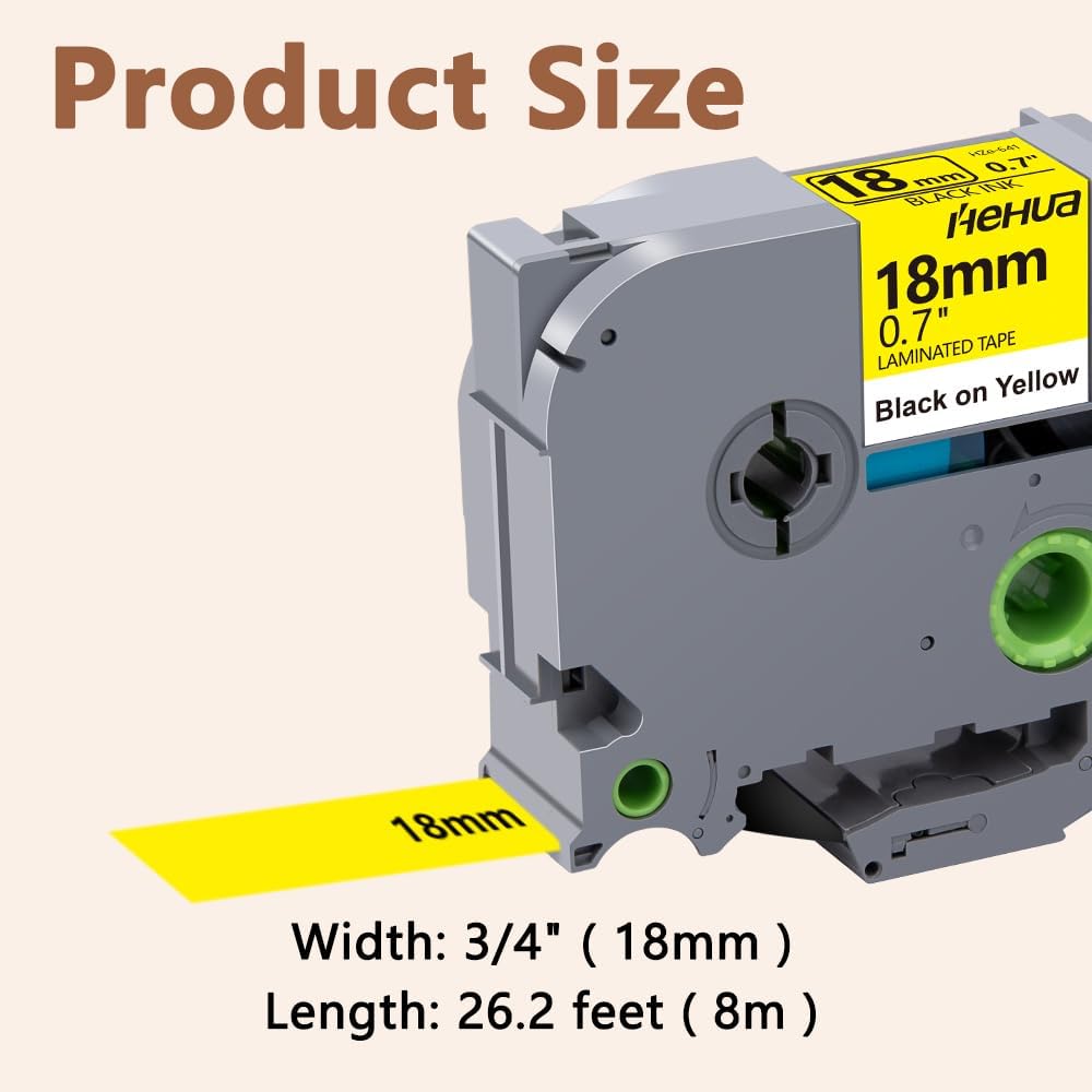 Hehua Tape Tze Tz 18mm 0.7 Laminated Yellow Compatible for Brother P-Touch TZe-641 TZe641 TZ641 TZ641 Tape for Ptouch PT D400 D600 D610 P710bt, 3/4'' x 26.2ft Black on Yellow, 3 Pack