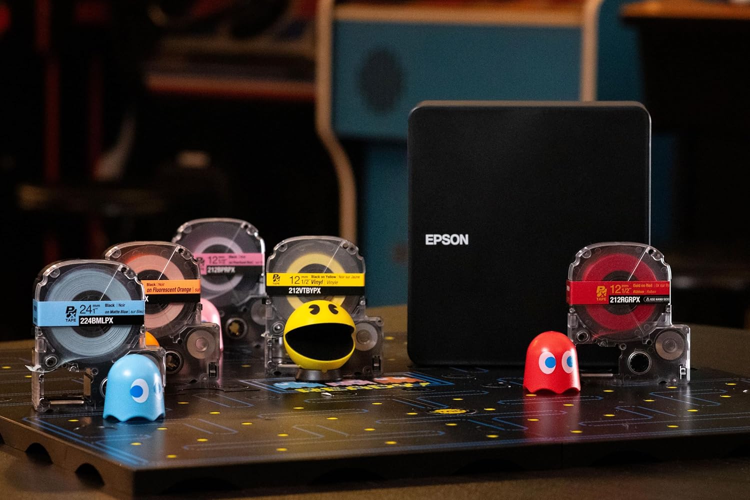 - DIMENSIONS AND COLOR - This Epson Labelworks Designer Collection tape is 1" (24mm) in width and 26 ft in length. The label maker tape is Matte Blue and prints with Black text. Works with Epson LABELWORKS PX printers and K-Sun printers, more listed below and in product description.