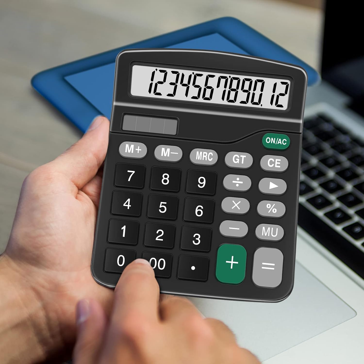 Calculators, Splaks 2 Pack Standard Functional Desktop Calculators Sola and AA Battery Dual Power Electronic Basic Calculator with 12-Digit Large Display for Office, Home, School (2 Black)