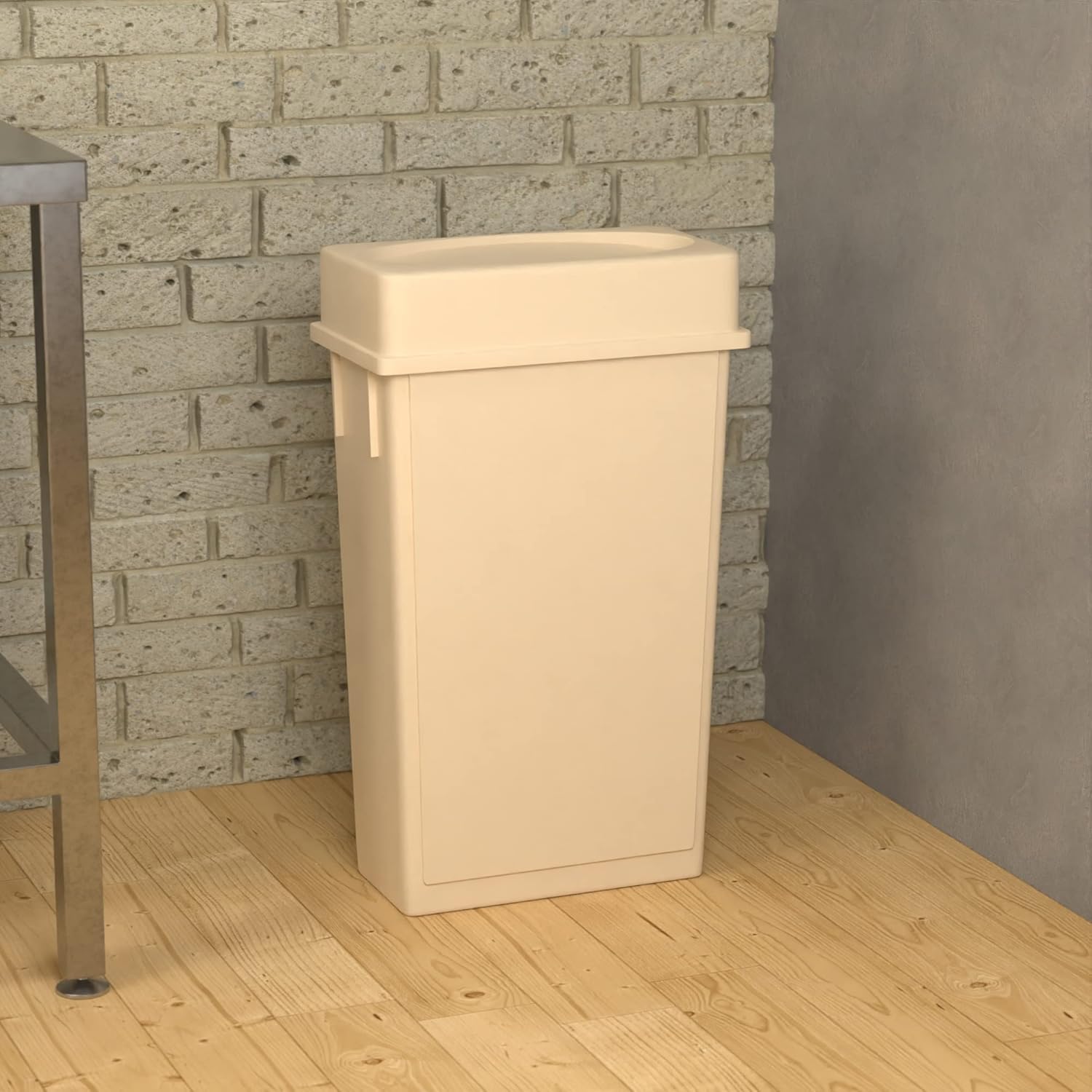 23 Gallon Beige Slim Jim Trash Can with Drop Shot Lid