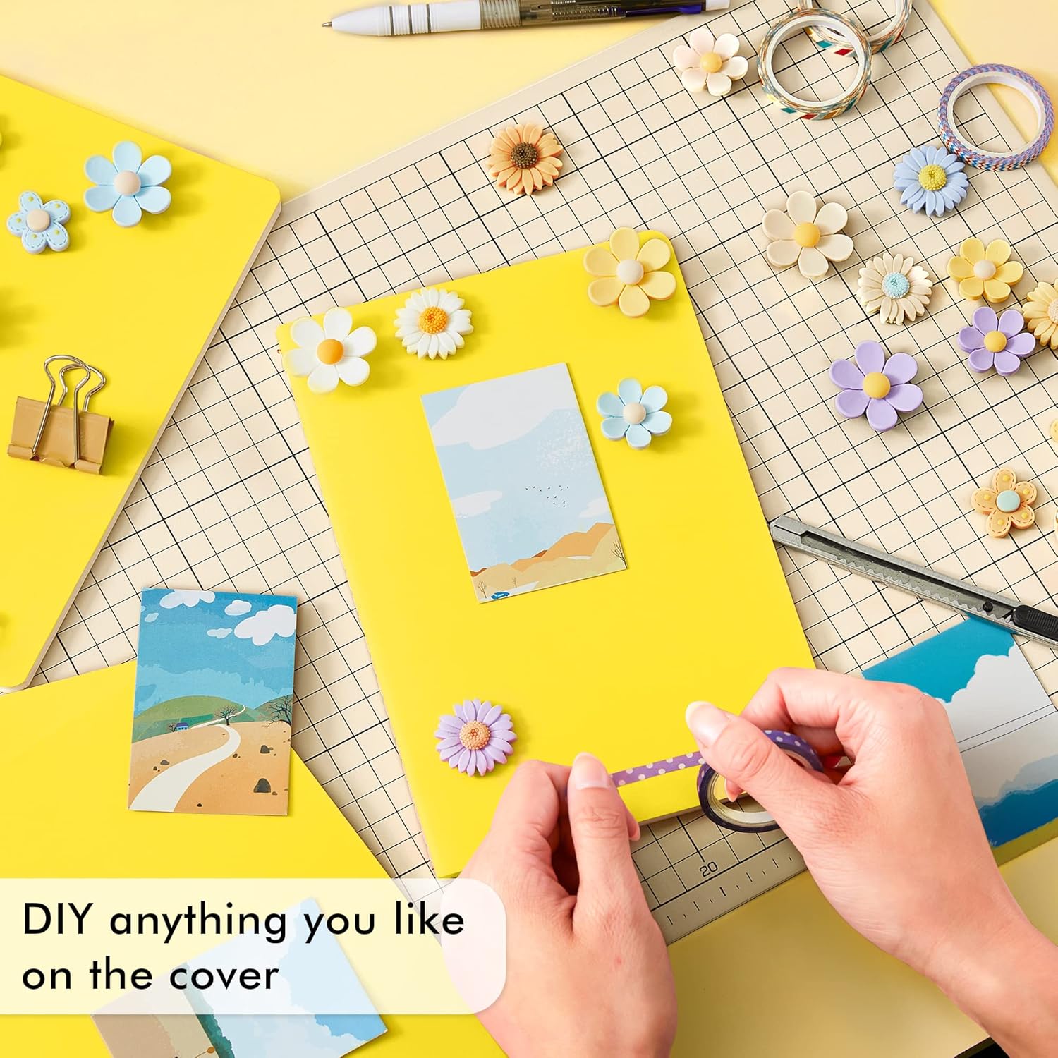 • Feela 16 Pack Soft Cover Journals include 16 lemon yellow A5 college ruled soft cover travel journals. 250 GSM colored paper cover outside and 80 GSM smooth writing lined pages inside.