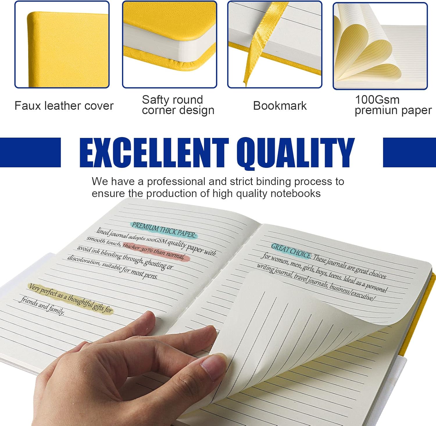- Size & Package:5.7 in by 8 in Lined Journal Notebooks features durable and water-resistant vegan leather cover, can protect the pages inside for years and provide a comfortable writing surface.rounded corners, 160 pages, ribbon bookmark & elastic closure band.