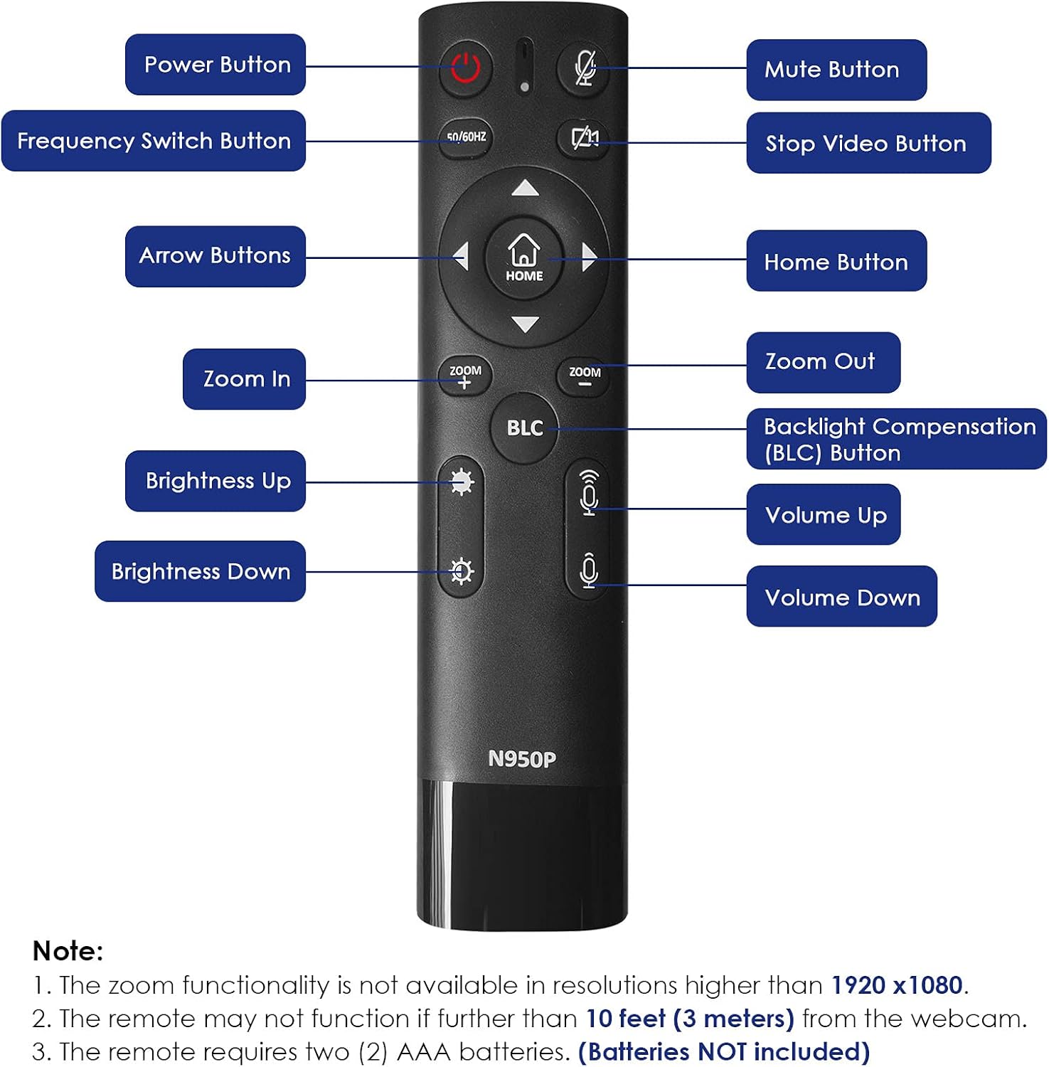 - 【RF Remote with 5X Digital Zoom】Control your video calls with a remote so even away from the desk you are still in charge. Turn off the webcam, adjust the volume, zoom in and out, mirror/flip your image, and more. With support for 5X digital magnification at 1080P, the NexiGo 4K webcam makes it possible to zoom in gradually with the single press of a button.