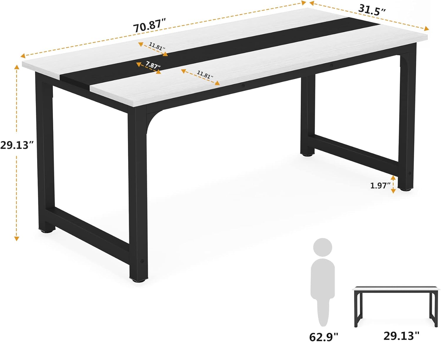 Tribesigns 70.8”Executive Desk, Large Office Computer Desk with Thicken Frame, Modern Simple Workstation Business Furniture for Home Office, White/Black