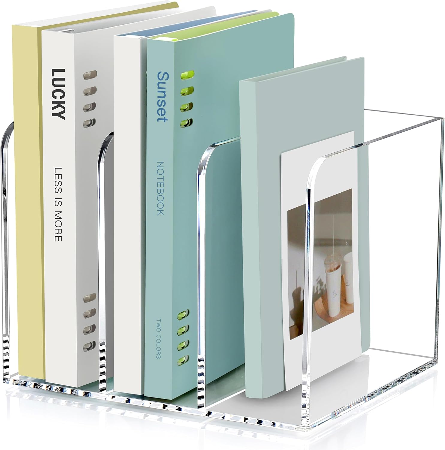 Acrylic Magazine Holder Desk Organizer Workspace Sorters,Clear Bookend File Sorter Holder,Folder Rack, Office Accessories Organization Storage with 3 Vertical Compartments