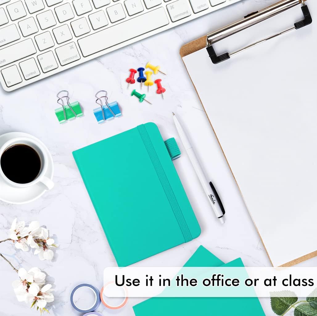 feela 15 Pack Pocket Small Notebooks Bulk, Mini Cute Memo Notepads Hardcover College Ruled Lined Journals with Pen Holder for Women Girls Office School, with 15 Black Pens, 3.5”x 5.5”, A6, Aqua
