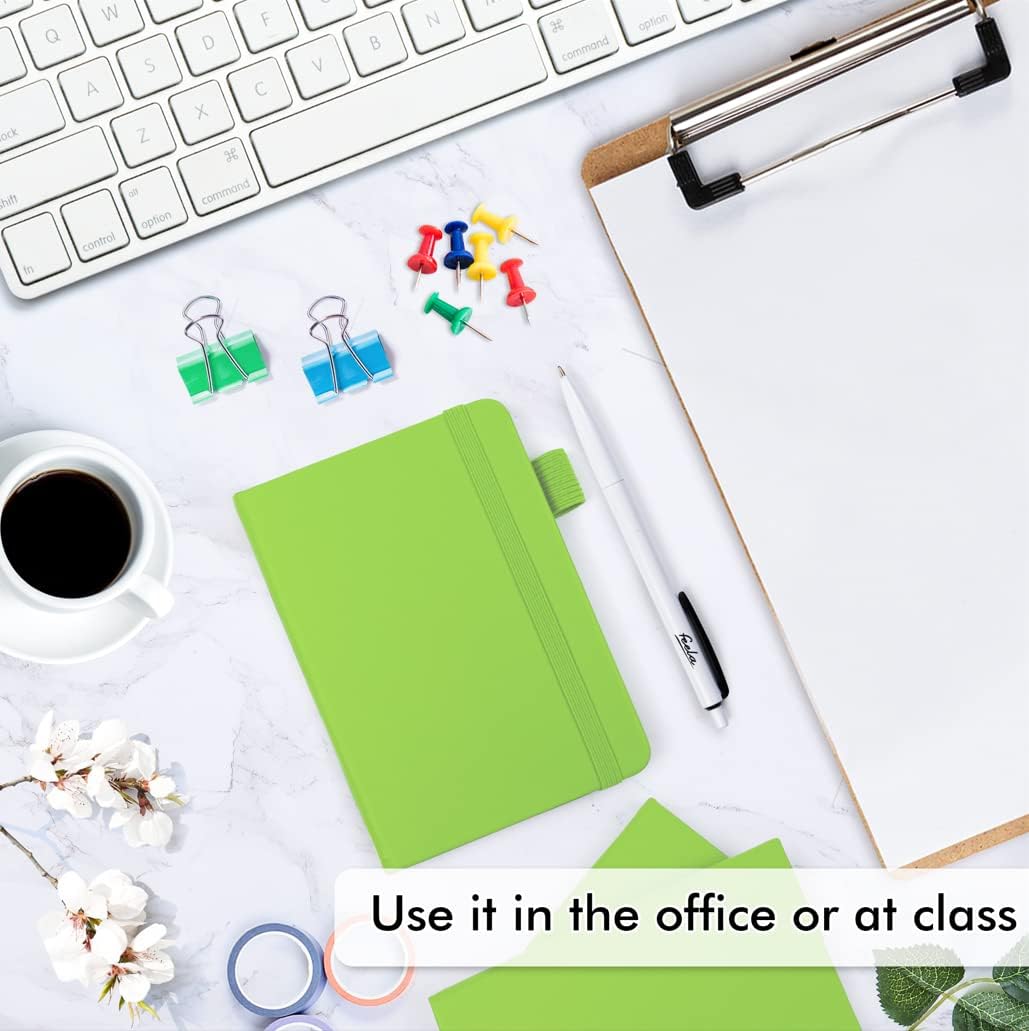 feela 15 Pack Pocket Small Notebooks Bulk, Mini Cute Memo Notepads Hardcover College Ruled Lined Journals with Pen Holder for Women Girls Office School, with 15 Black Pens, 3.5”x 5.5”, A6, Green