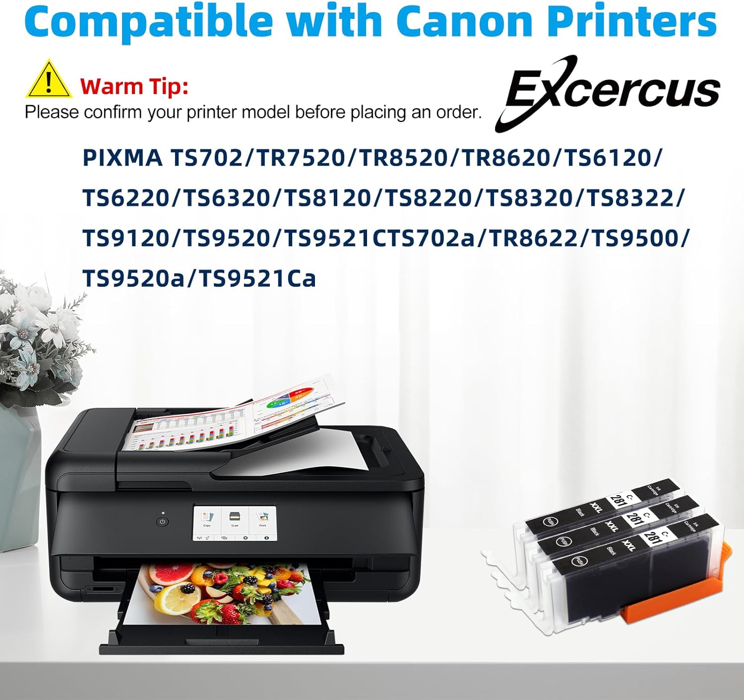 - ă100% Compatible PrintersăEXCERCUS Canon CLI-281XXL cartridges 100% Compatible Canon PIXMA TS702 TS6120 TS6100 TS6220 TS6200 TS6320 TS8120 TS8100 TS8220 TS8200 TS8320 TS9120 TS9100 TS9520 TS9500 TS9521C TR7520 TR7500 TR8520 TR8500 TR8620 printers.