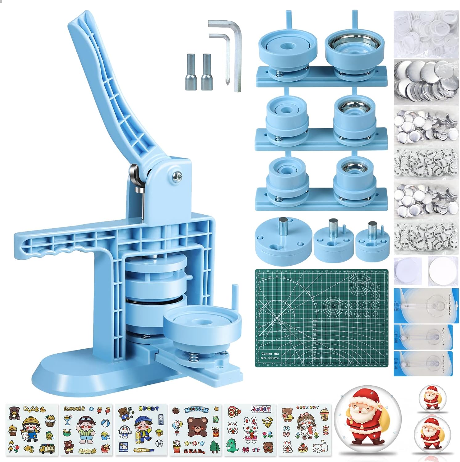 Button Maker Machine Multiple Sizes 1+1.25+2.25inch(4th Gen), DIY Button Pin Maker Machine Kit, Badge Press Machine with 300PCS 25+32+58mm Button Making Supplies& Cutting Mat&Circle Cutter