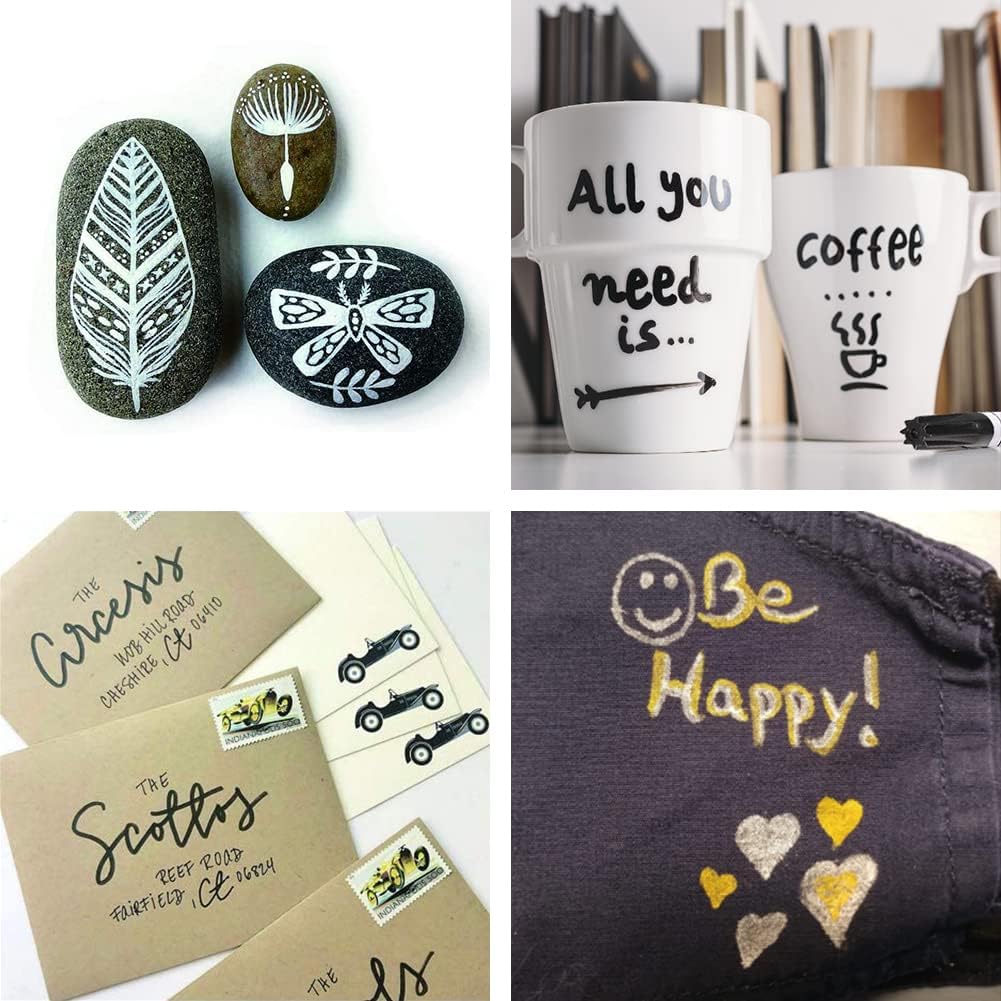 - 【Multipurpose】These wonderful paint pens can be used on multiple surfaces, such as rock, ceramic, wood, leather, plastic, fabric, canvas, stone, glass, metal, chalkboard craft supplies, etc