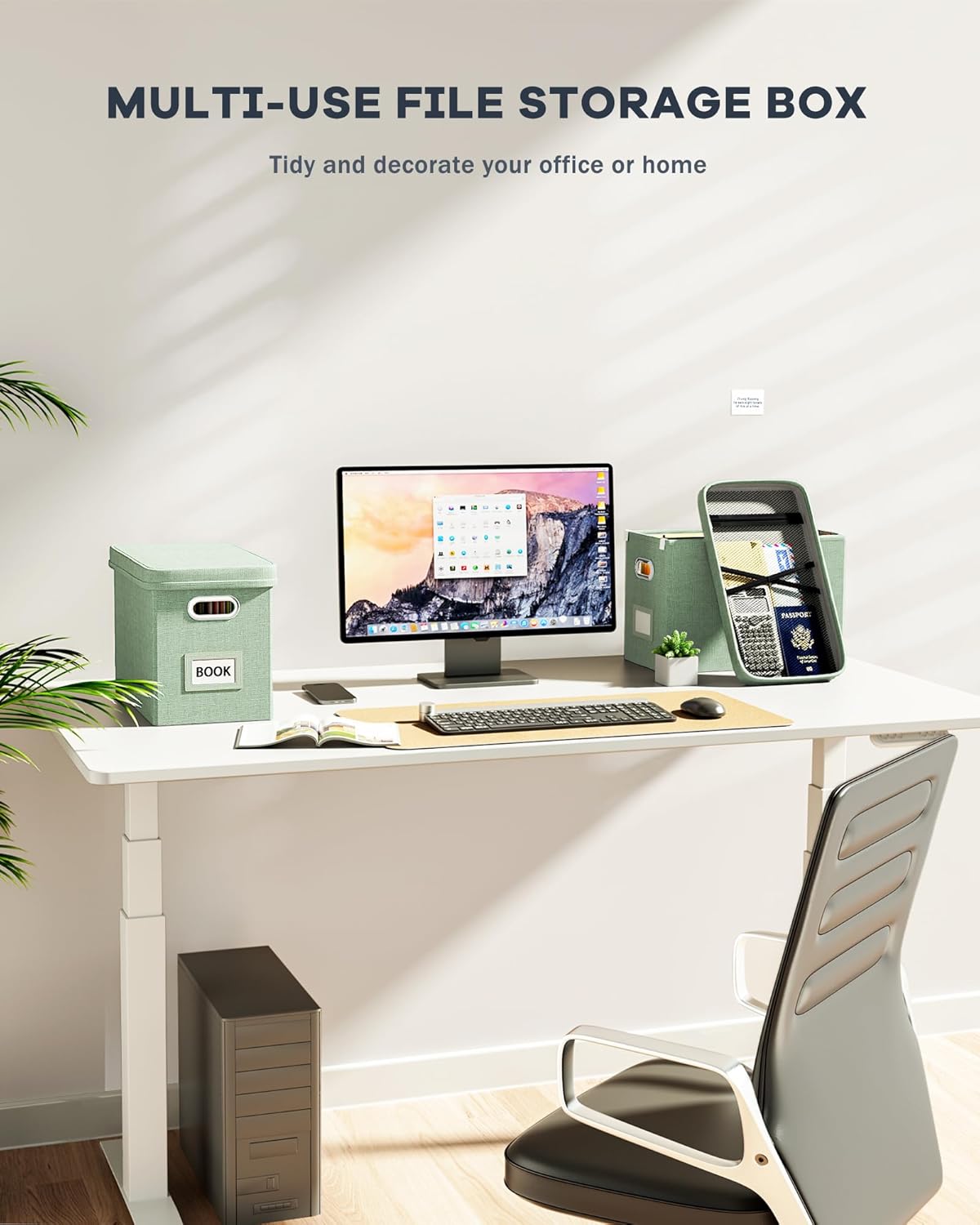 - 【Sturdy & Stackable】Portable storage box is made of well-made linen fabrics and durable material, with good support and bearing capacity, and the box top can withstand 100 lbs. The document boxes can be stacked when in use, or folded for easier storage when not in use.