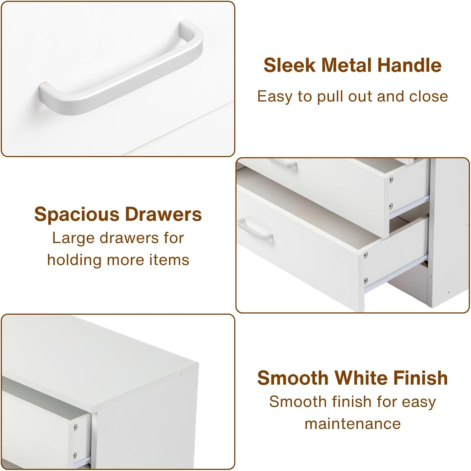 - Large Storage Space - Three drawers can run smoothly on metal glides, which provide easily accessible storage for clothing and bedroom items. The spacious drawers can classify organize sportswear, skirt, underwear, toy, file, and other stuff.