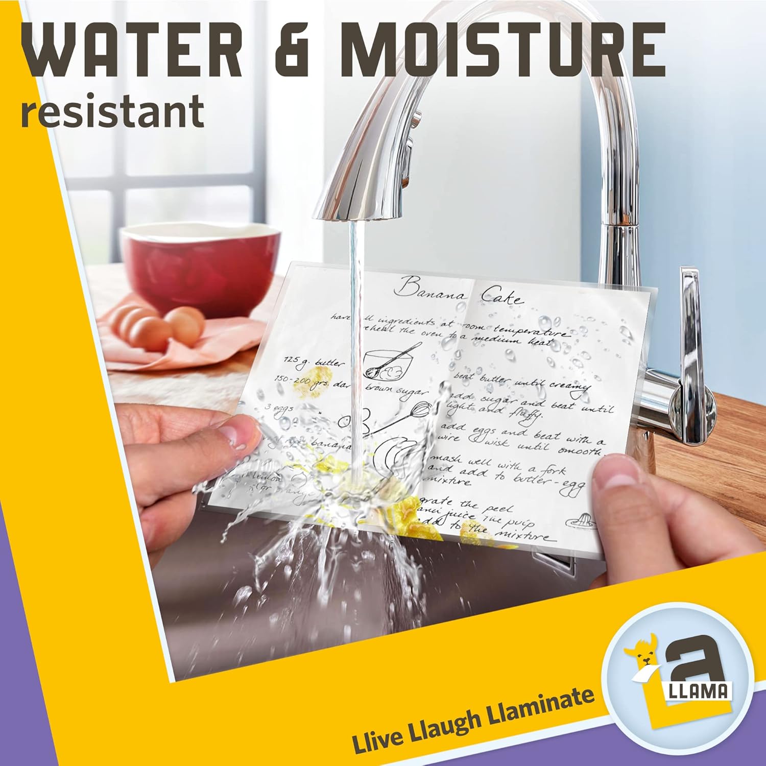- 🦙Benefits of Laminate Sheets: premium quality laminating pouches extend the longevity of your essential laminate papers, add strength and durability to frequently used documents, certificates, cards, photos, study aids, bookmarks, and membership cards while protecting them from water/moisture, UV light, and creasing