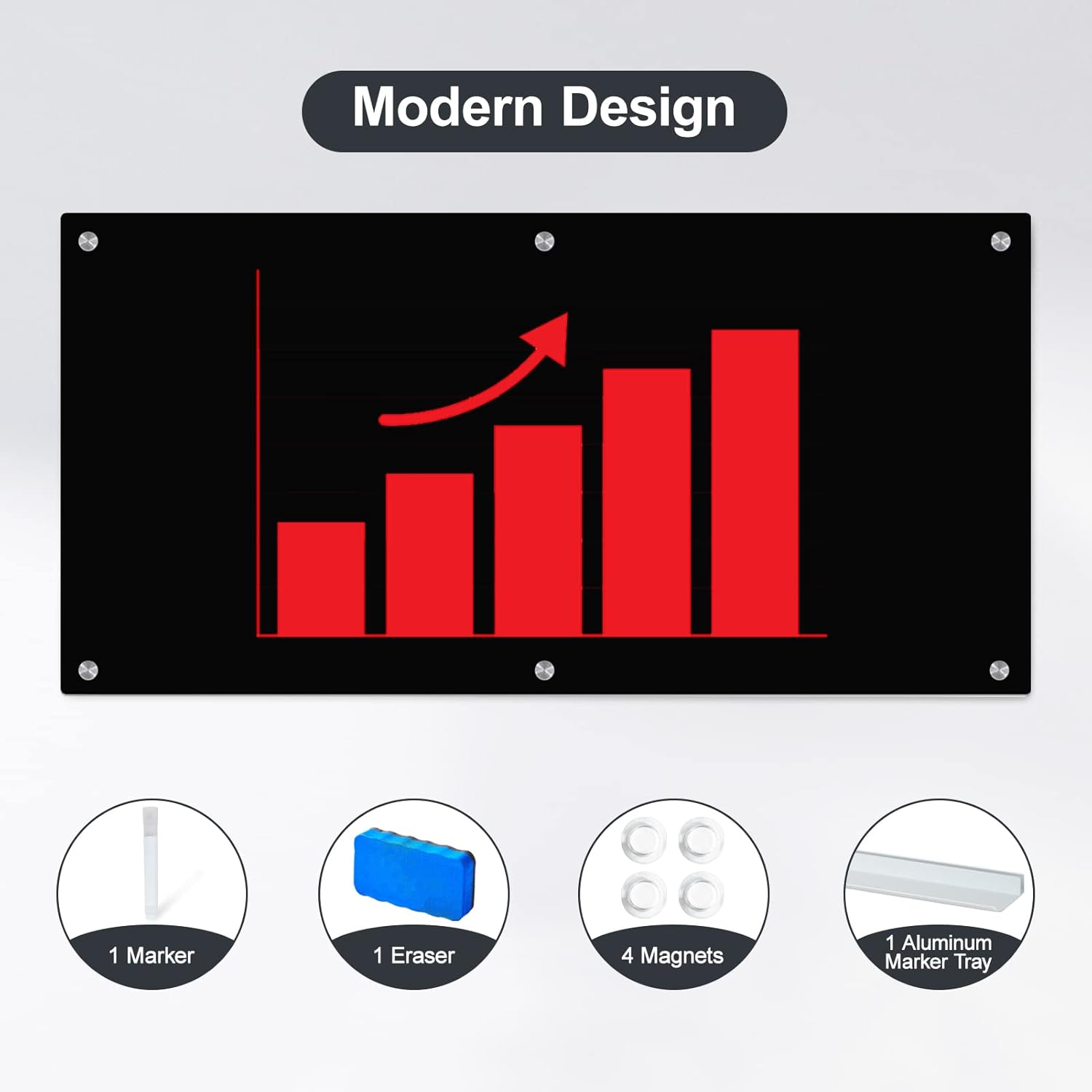 - 【ACCESSORIES INCLUDED】: The package includes 1 dry erase marker, 4 magnets, 1 glass whiteboard eraser and 1 removable aluminium marker tray for mounting. One-stop shopping. It's a great gift idea for your workmate, boss or spouse which can enhance the office/ house atmosphere