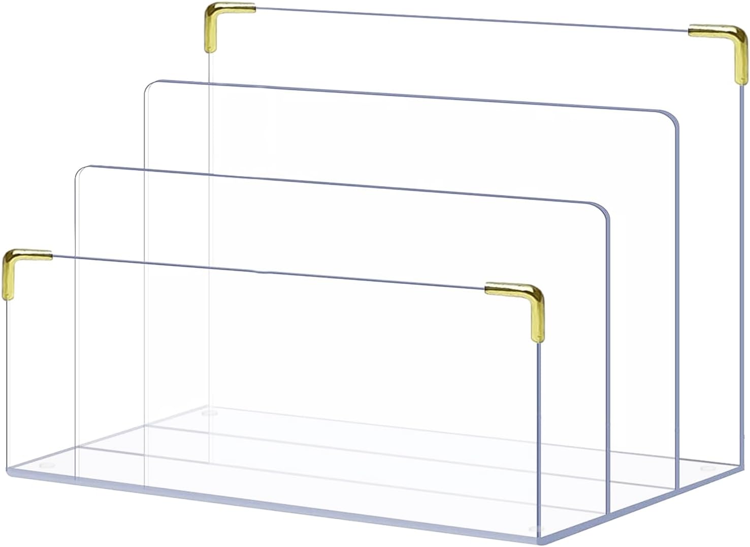 - LUXE DESK ORGANIZER - This clear acrylic file holder with chic gold metal accents is the perfect addition to any desk, offering a stylish way to organize folders, mail, and magazines.