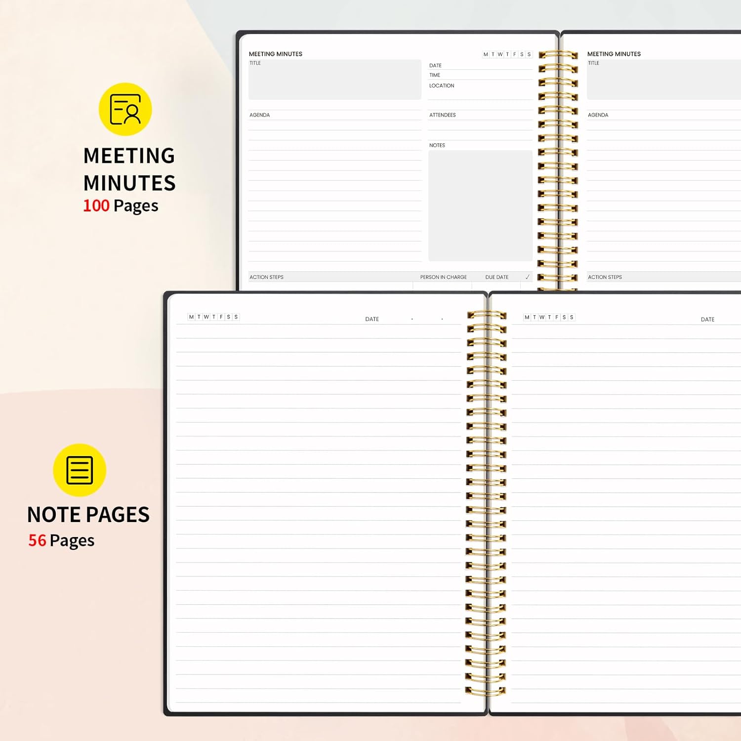 - Bonus Notes Pages In the Back: Extra 56 college ruled pages in the back provide space for note taking, and with the date section at the top for tracking them. With 100 pages for meeting minutes, the manager notebook will cover more than half a year, even in daily use. Also provides index pages for organizing this office planner.